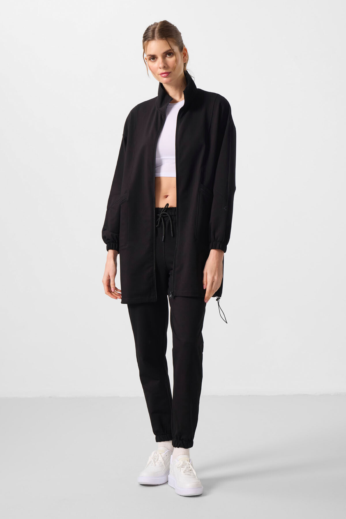 TommyLife Siyah Dik Yaka Fermuarlı Rahat Form Kadın Eşofman Tunik Takım - 95345