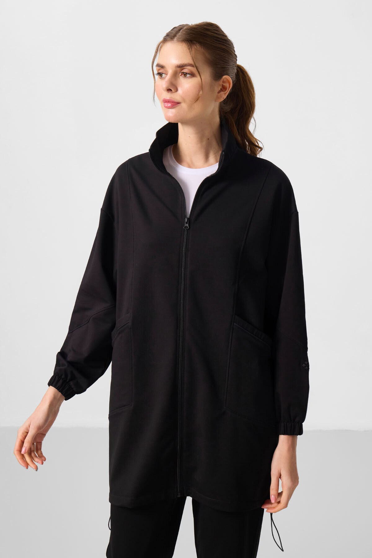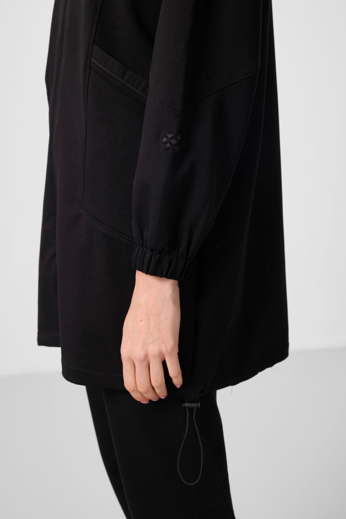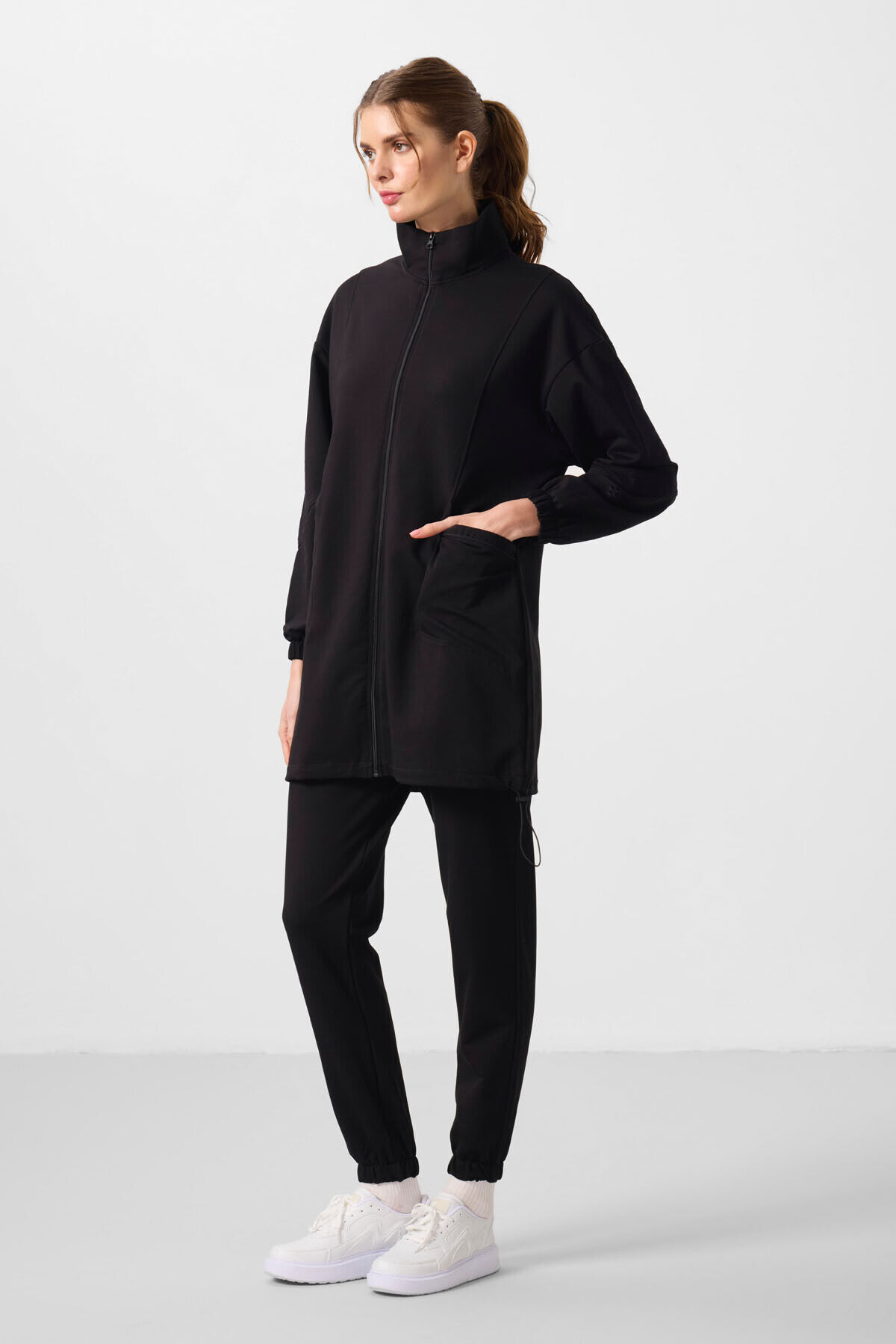 Siyah Dik Yaka Fermuarlı Rahat Form Kadın Eşofman Tunik Takım - 95345