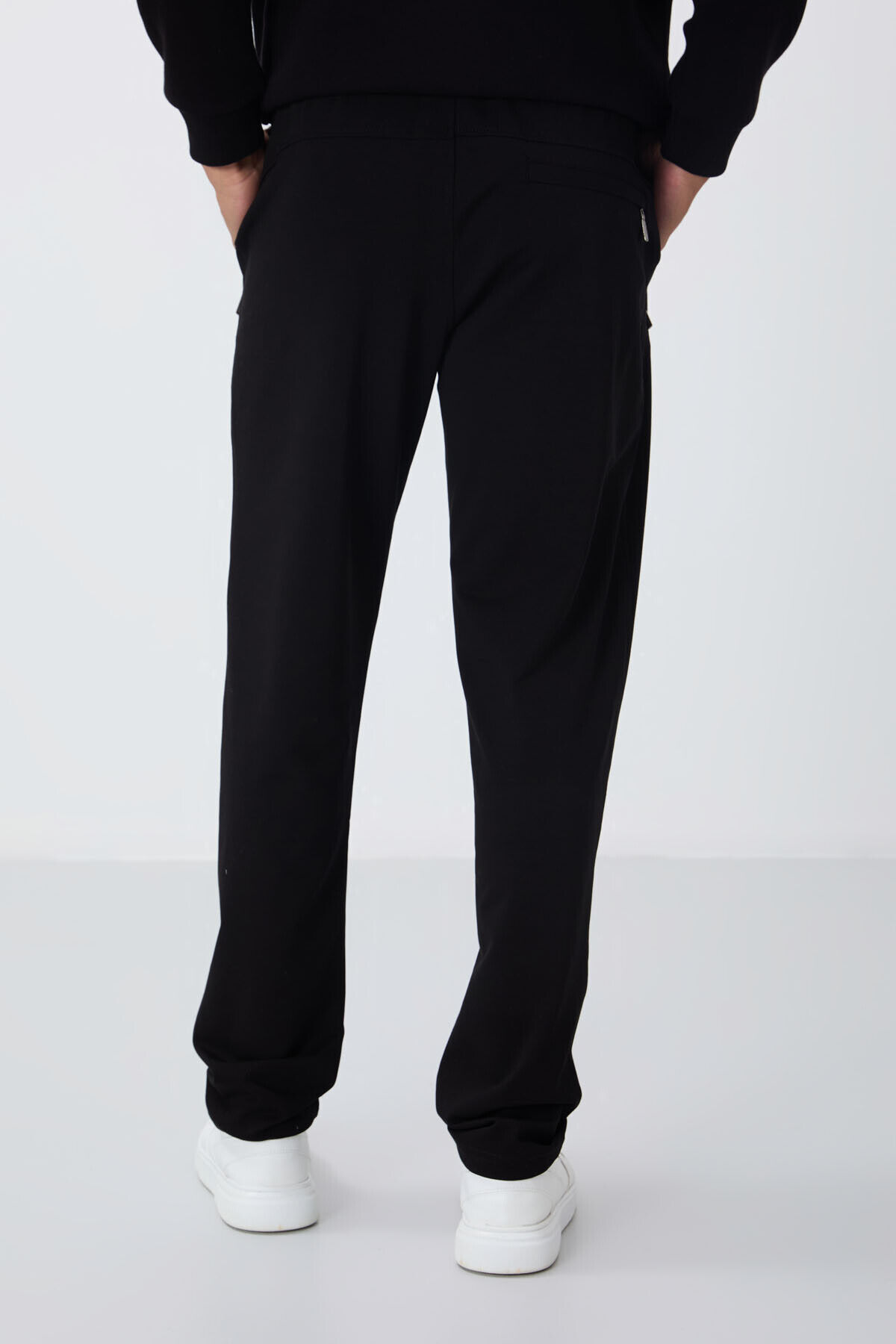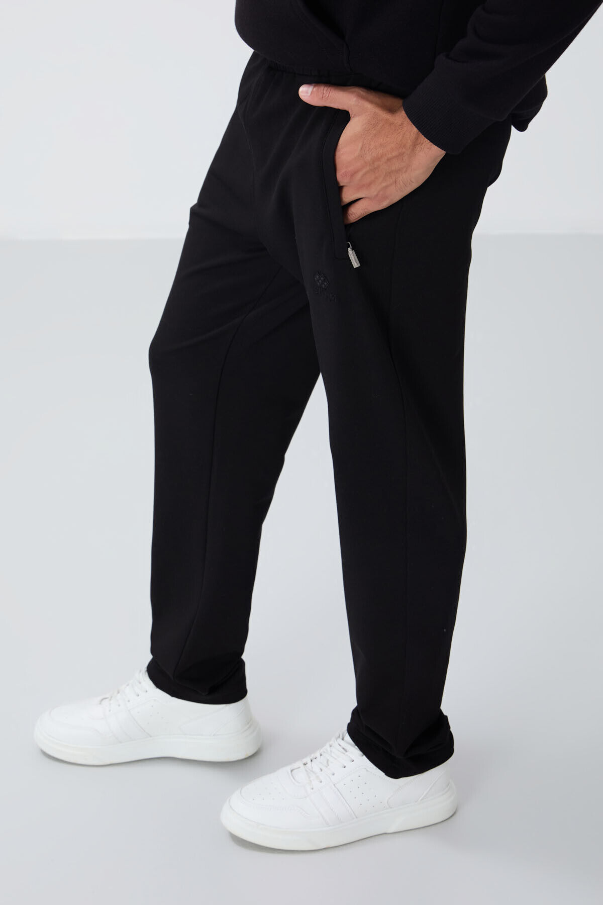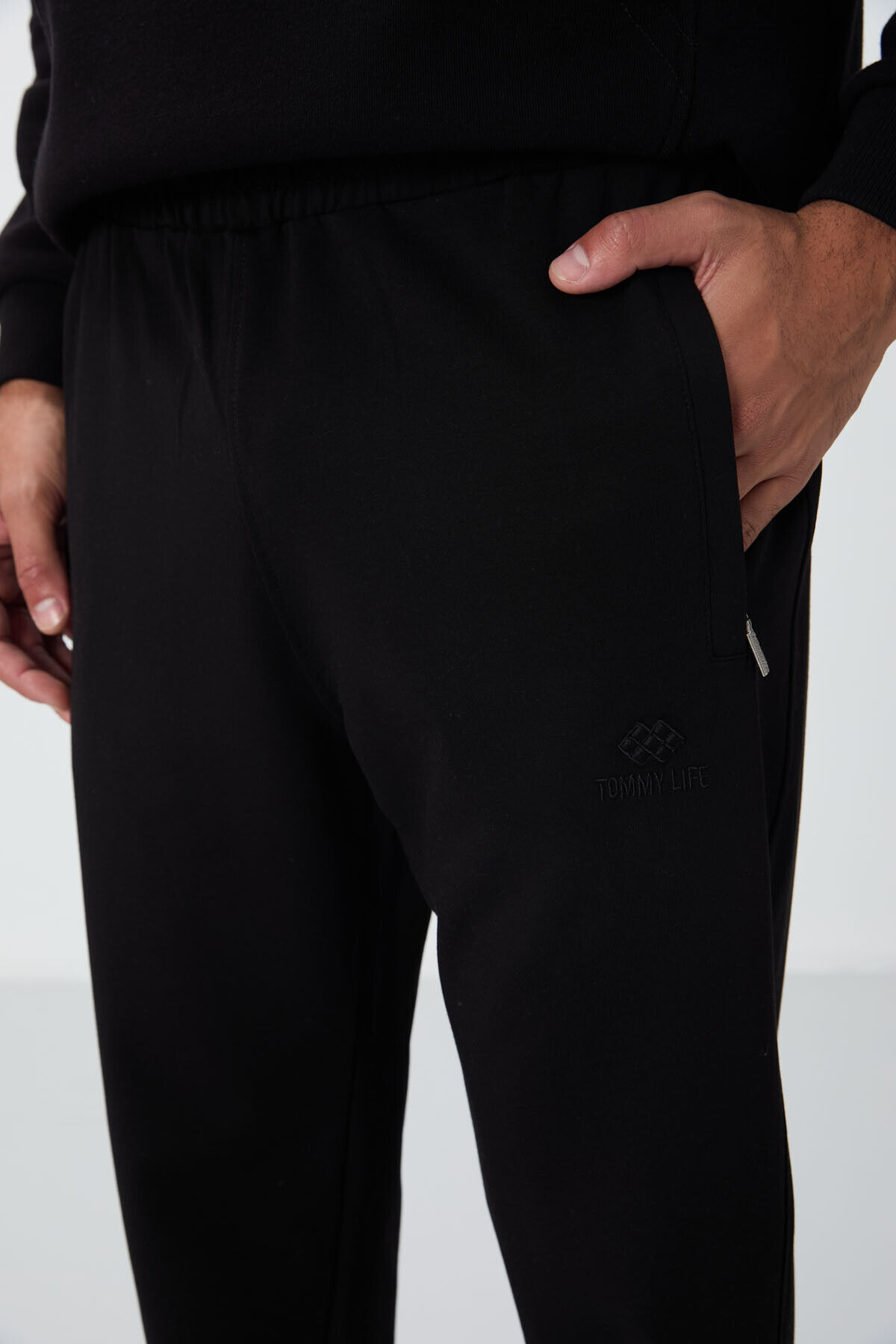 TommyLife Siyah Fermuar Cepli Dar Kalıp Klasik Paça Erkek Eşofman Alt - 84669