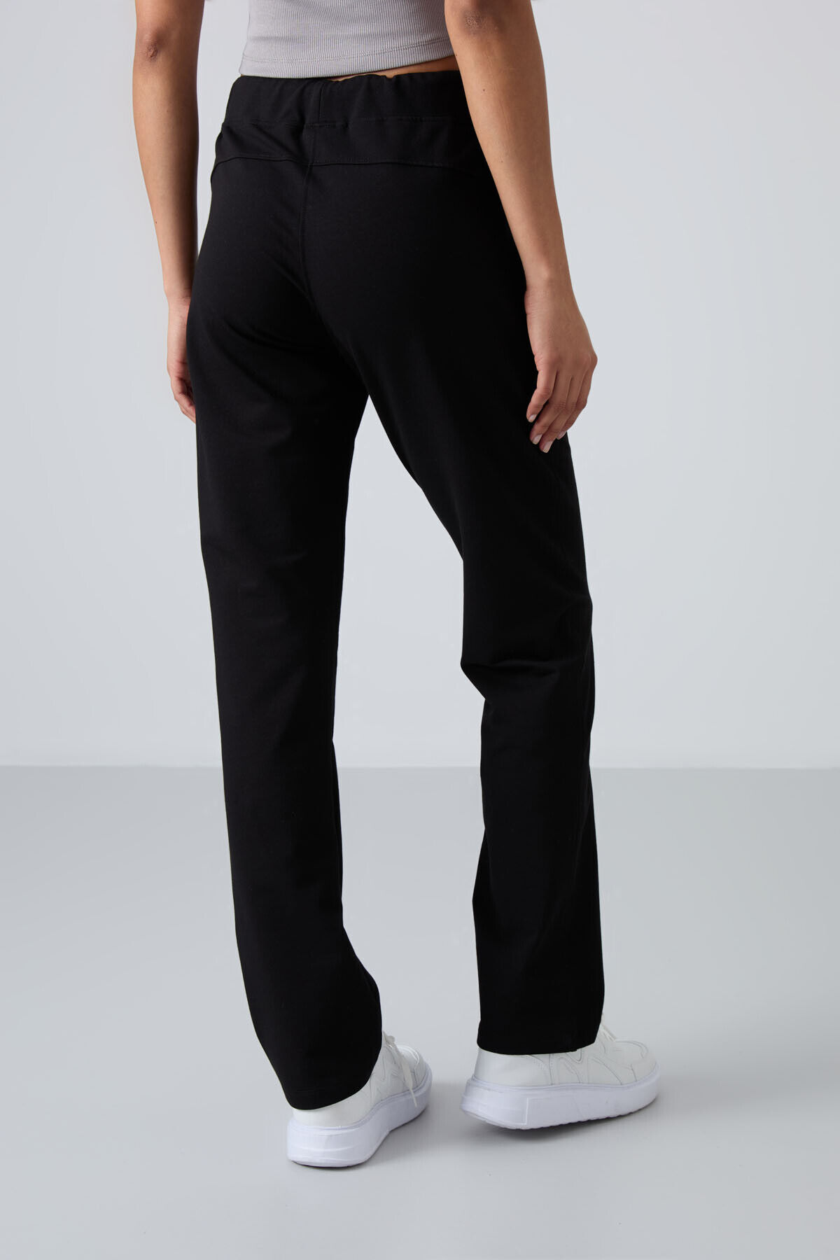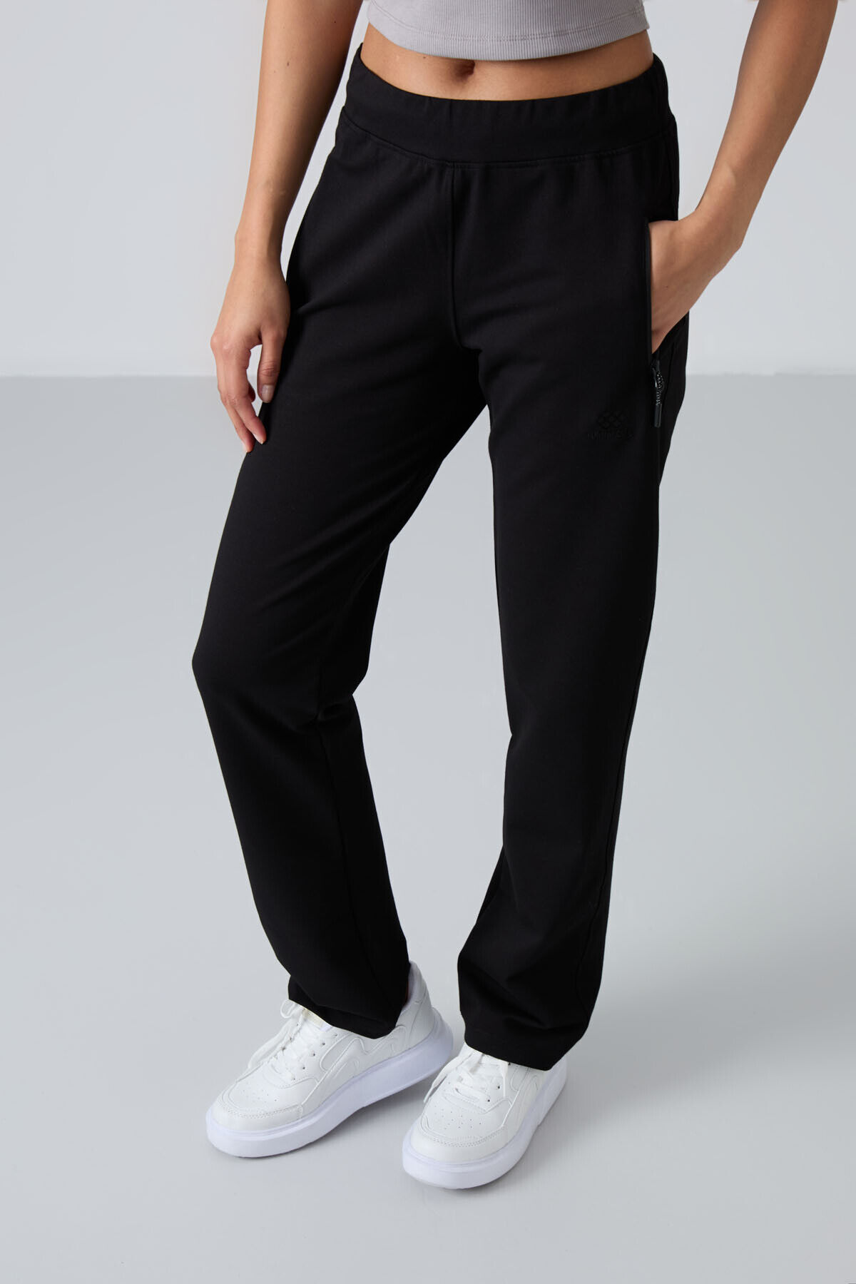 TommyLife Siyah Fermuar Cepli Rahat Form Klasik Paça Kadın Eşofman Alt - 94195