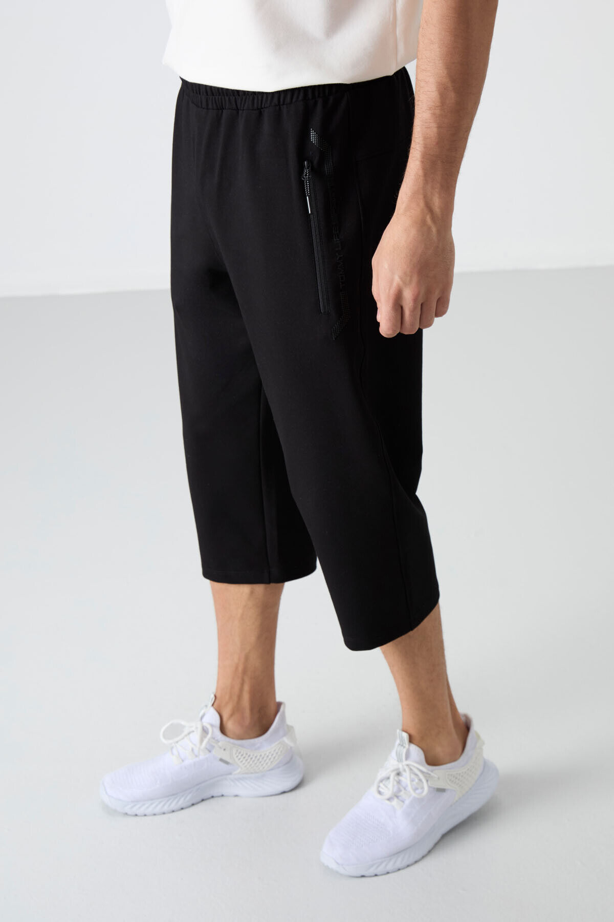TommyLife Siyah Fermuar Cepli Standart Kalıp Klasik Paça Erkek Kapri - 83091