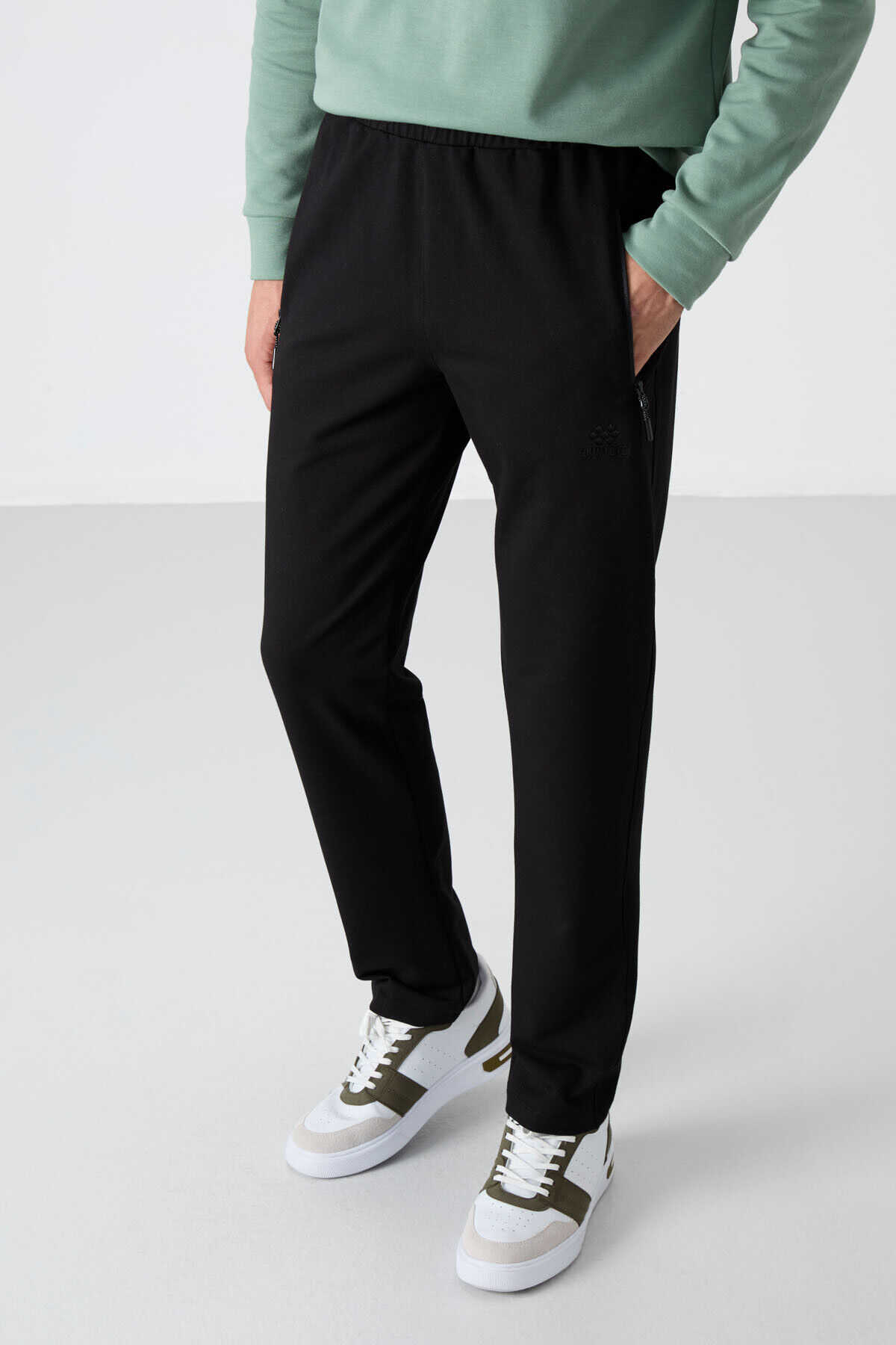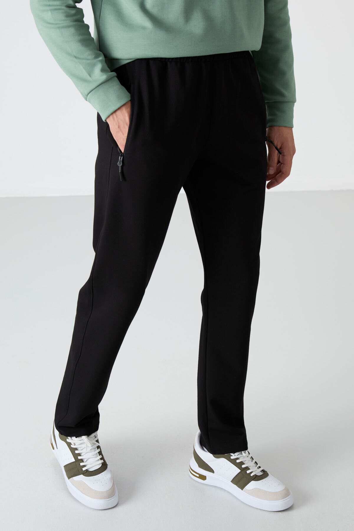 TommyLife Siyah Fermuarlı Üç Cepli Dar Kalıp Klasik Paça Erkek Eşofman Alt - 84671