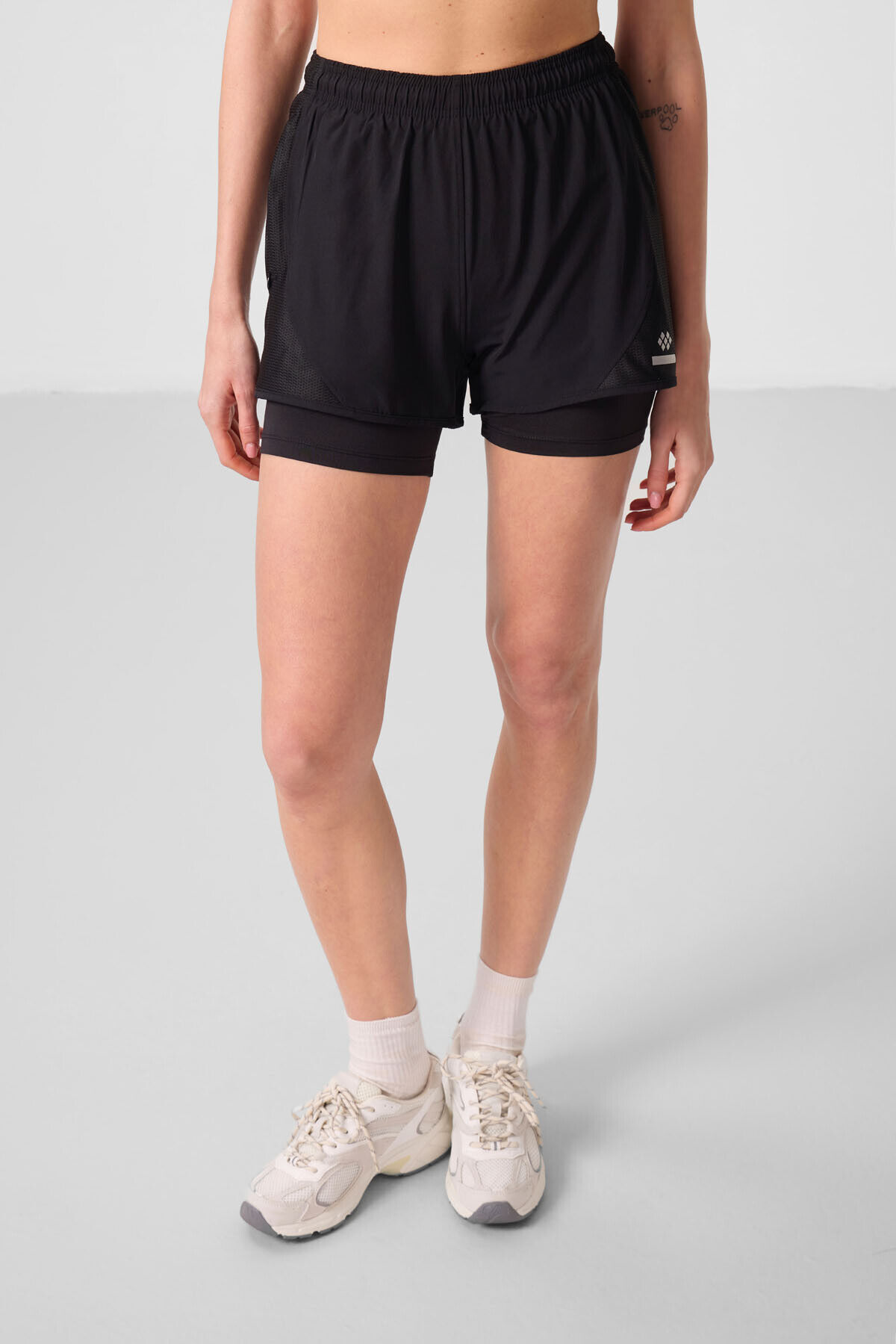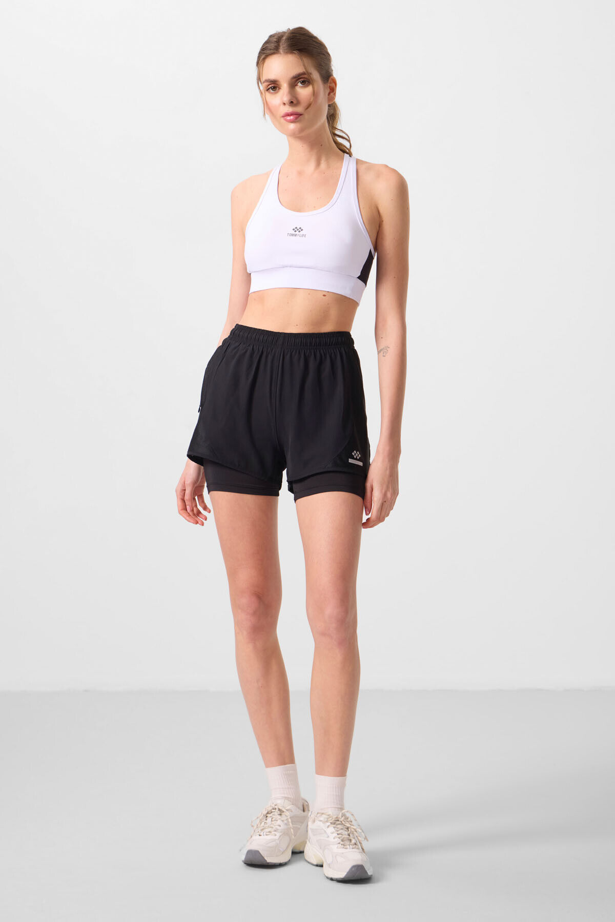 TommyLife Siyah Gizli Cep Fermuarlı Standart Kalıp Kadın İçi Taytlı Şort - 91015