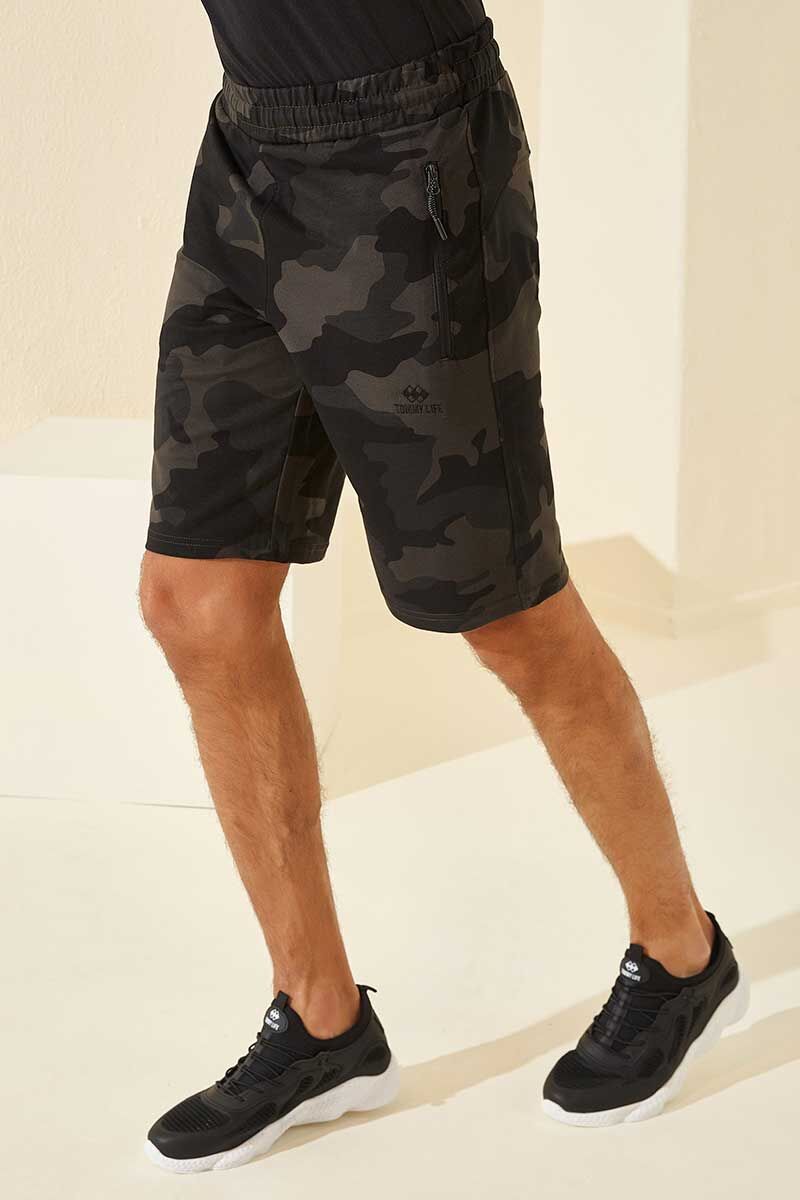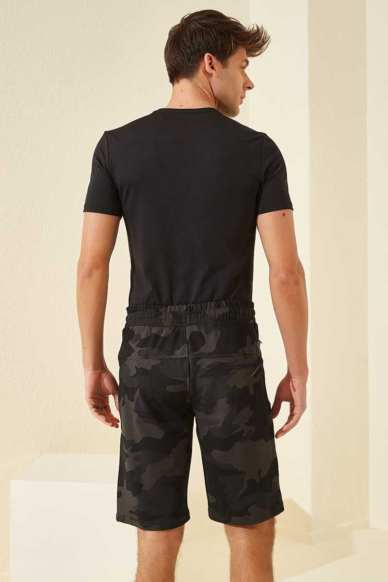 Siyah Gölge Kamuflaj Desenli Standart Kalıp Erkek Şort - 81157