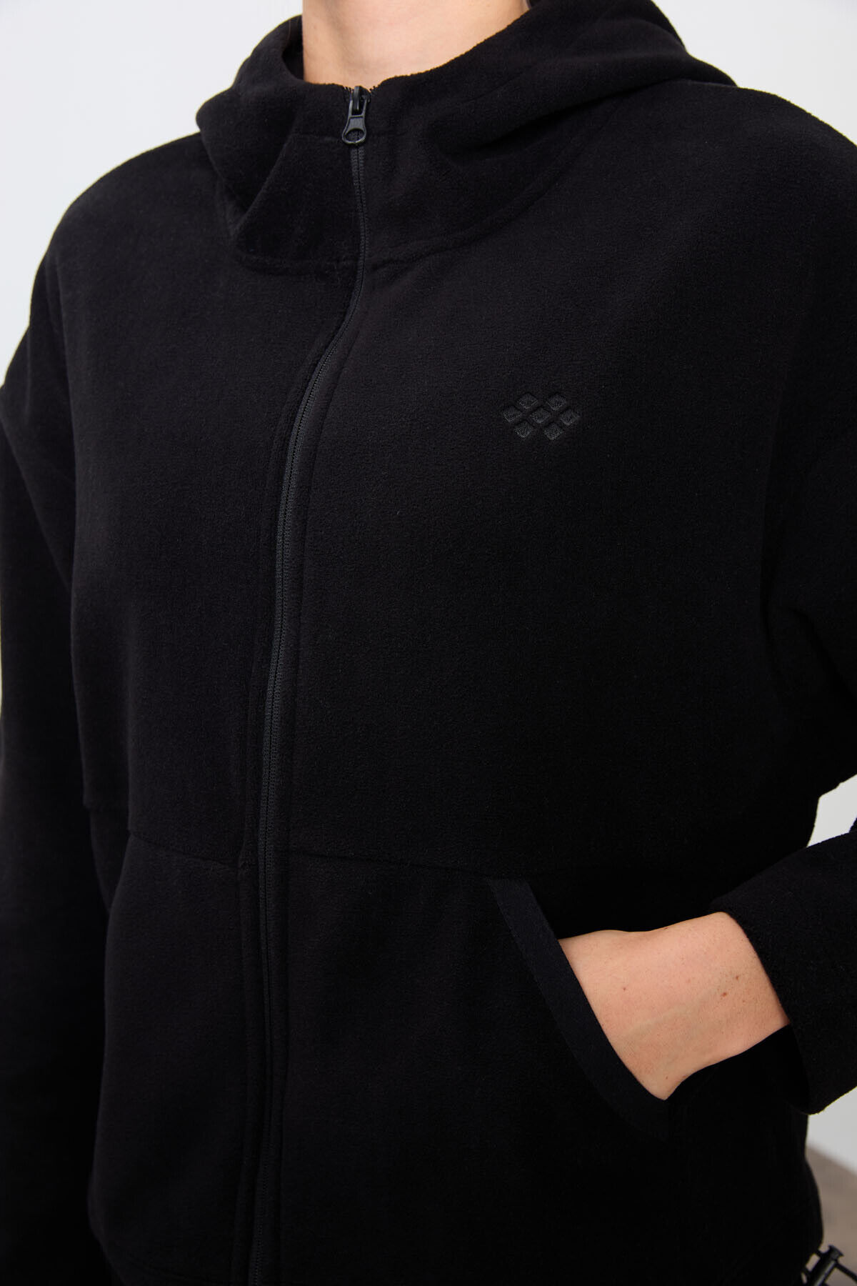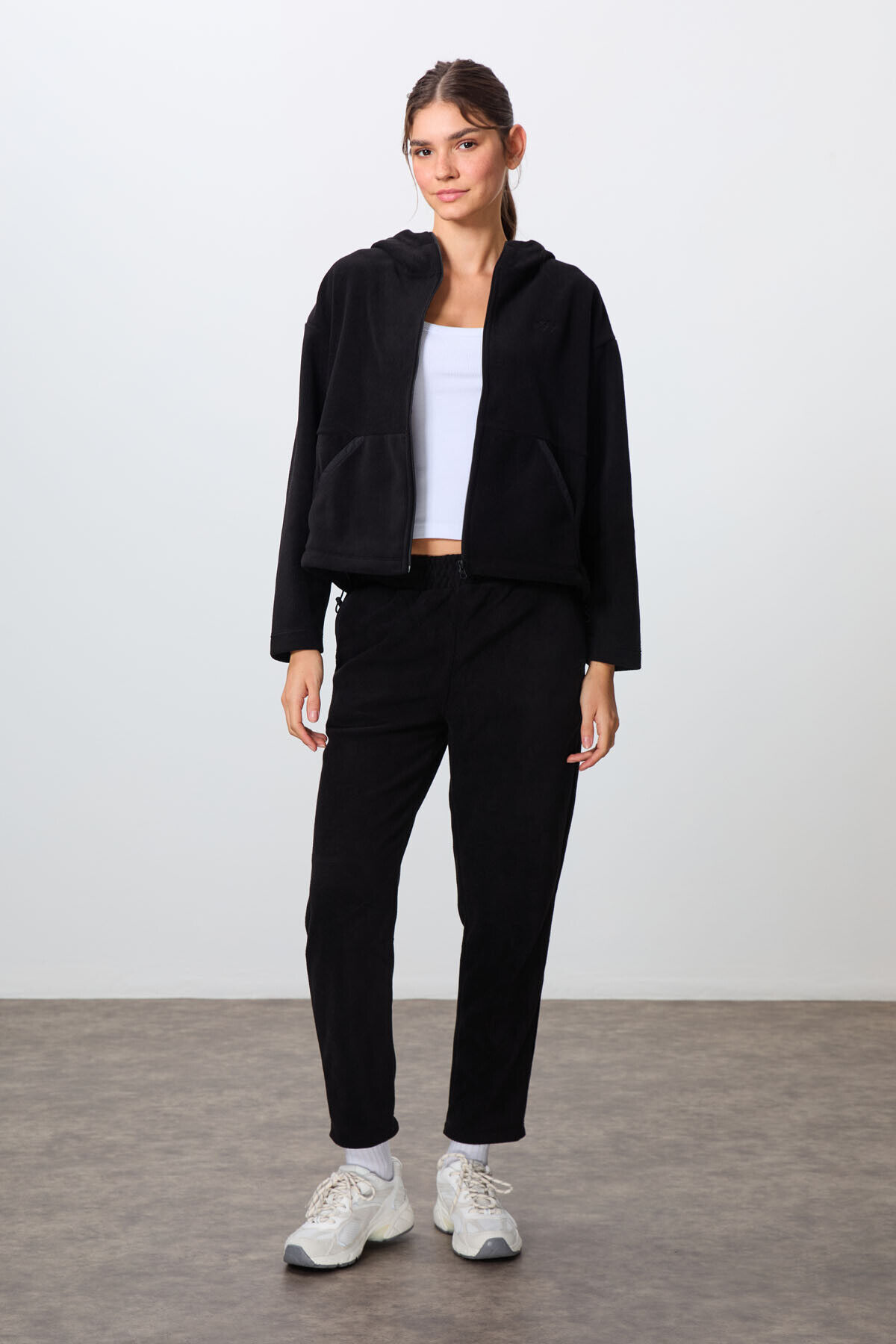 TommyLife Siyah Kalın Yumuşak Dokulu Kapüşonlu Oversize Nakışlı Polar Kadın Eşofman Takım -95338