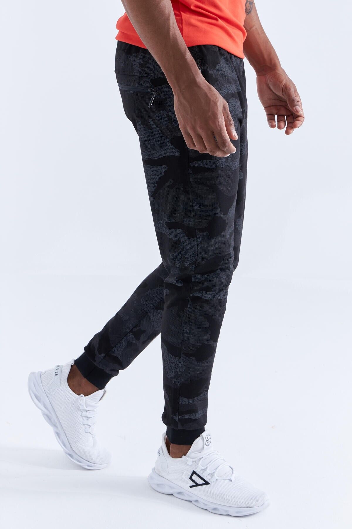 TommyLife Siyah Kamuflaj Kamuflaj Desenli Dar Kalıp Jogger Erkek Eşofman Alt - 84754