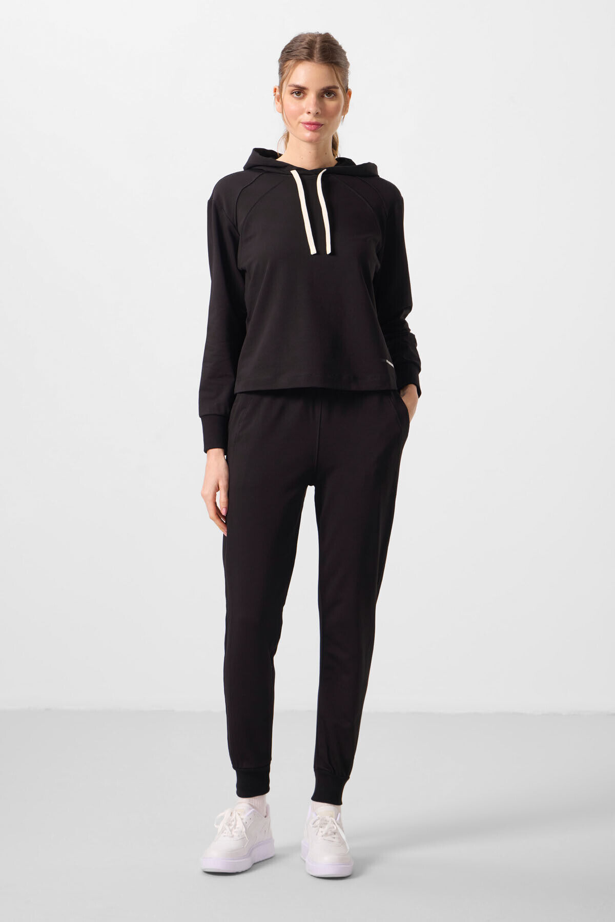 TommyLife Siyah Kapüşonlu Oversize Kadın Eşofman Takım - 95336