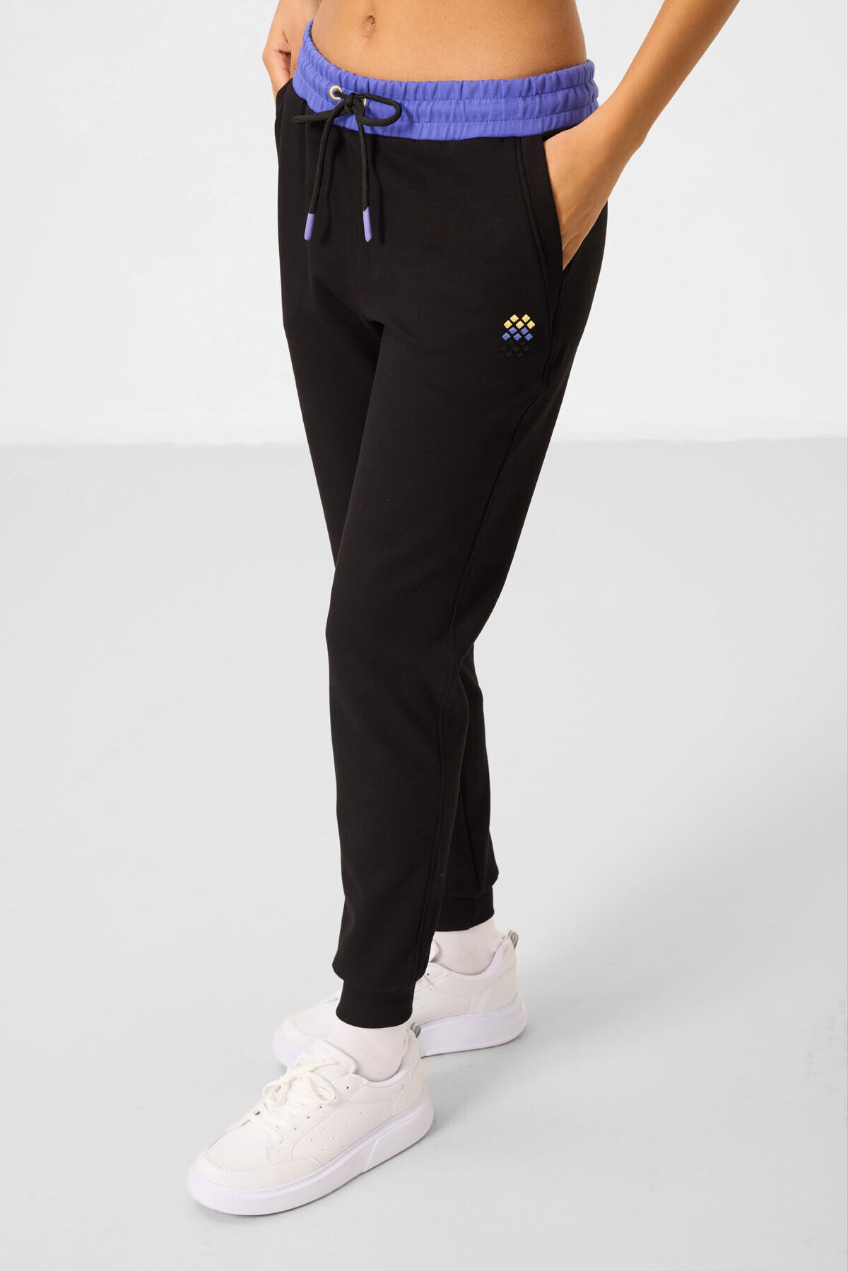 TommyLife Siyah Kapüşonlu Pamuklu Renk Bloklu Kadın Eşofman Takım - 95327