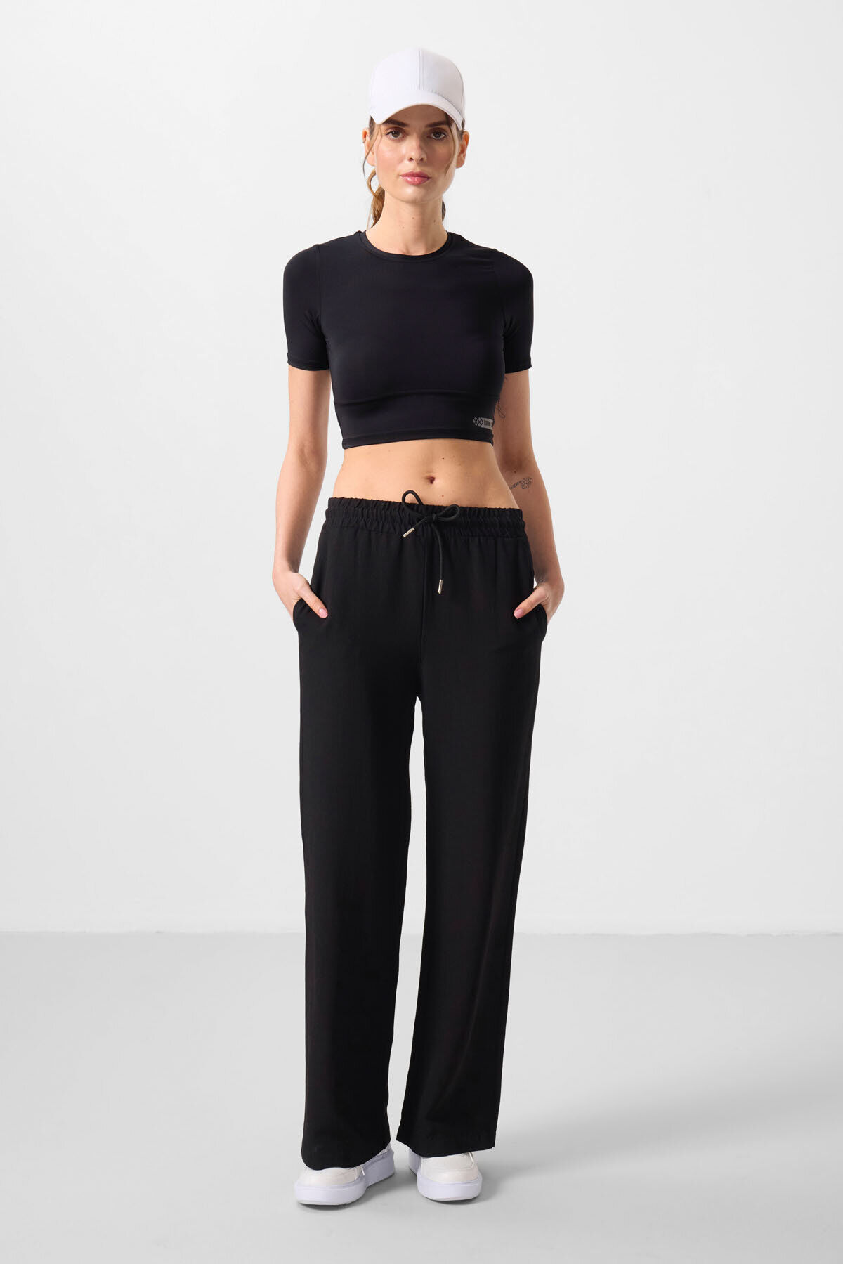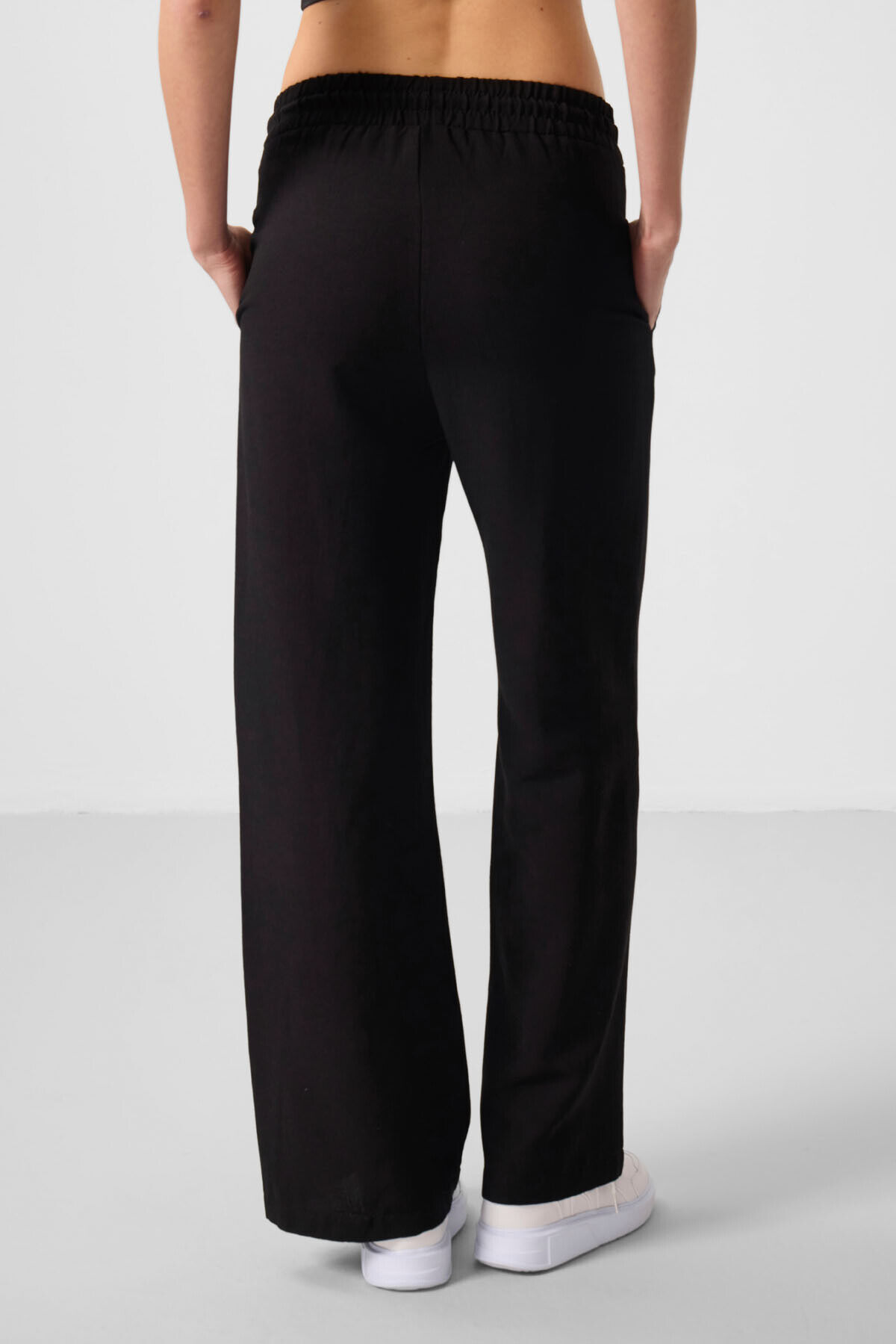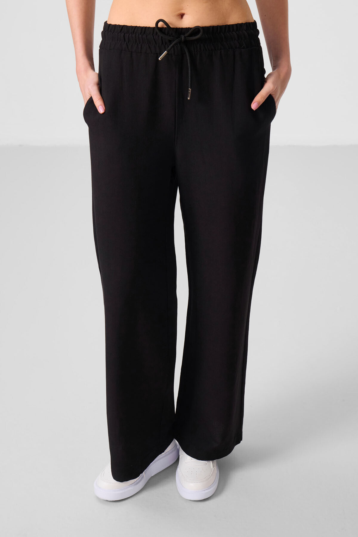 TommyLife Siyah Keten Geniş Paça Rahat Form Kadın Palazzo Pantolon - 94675