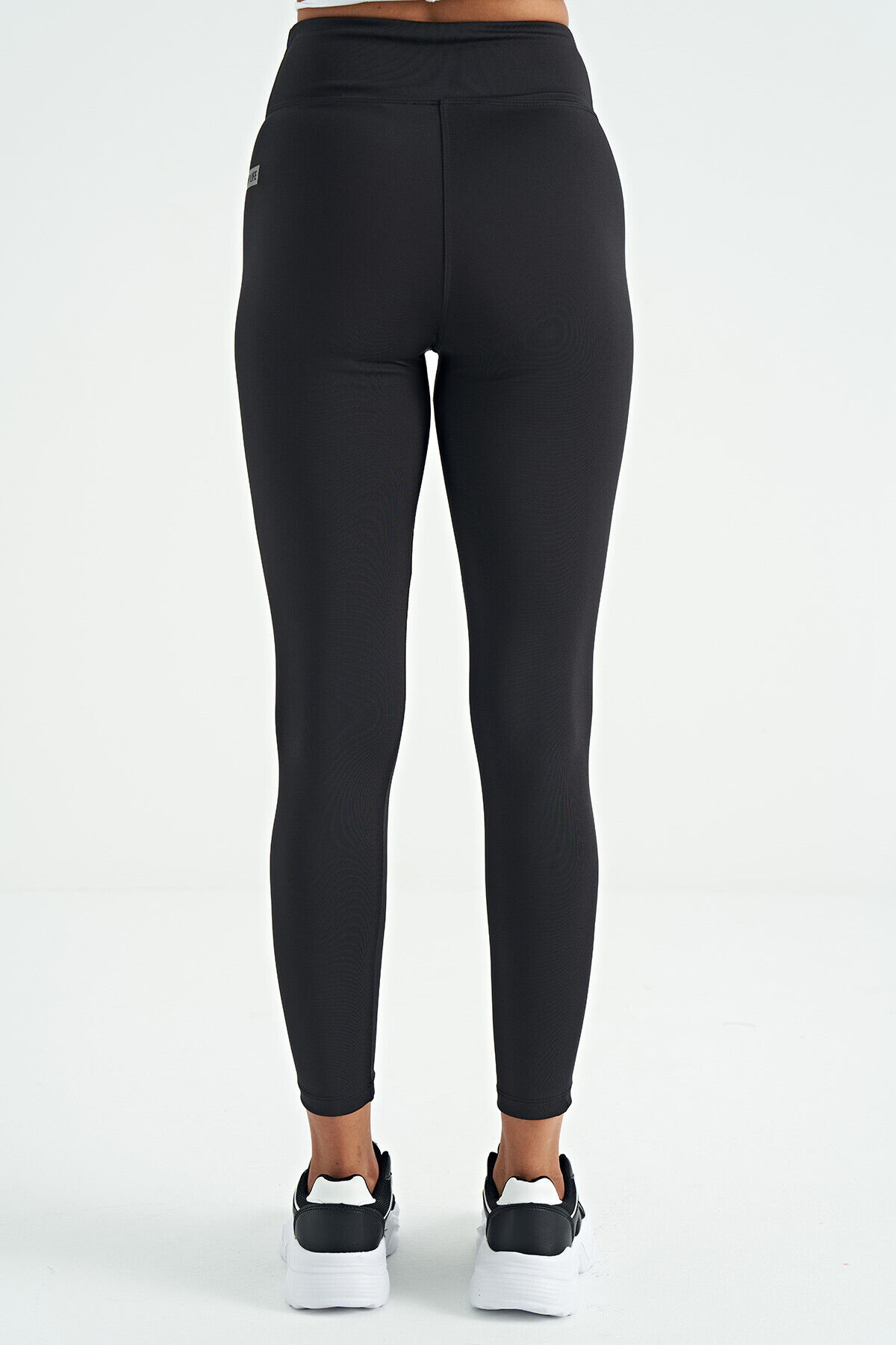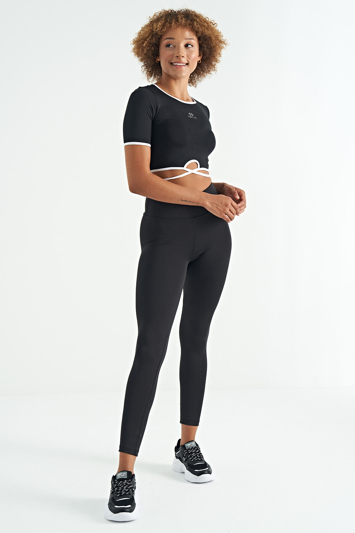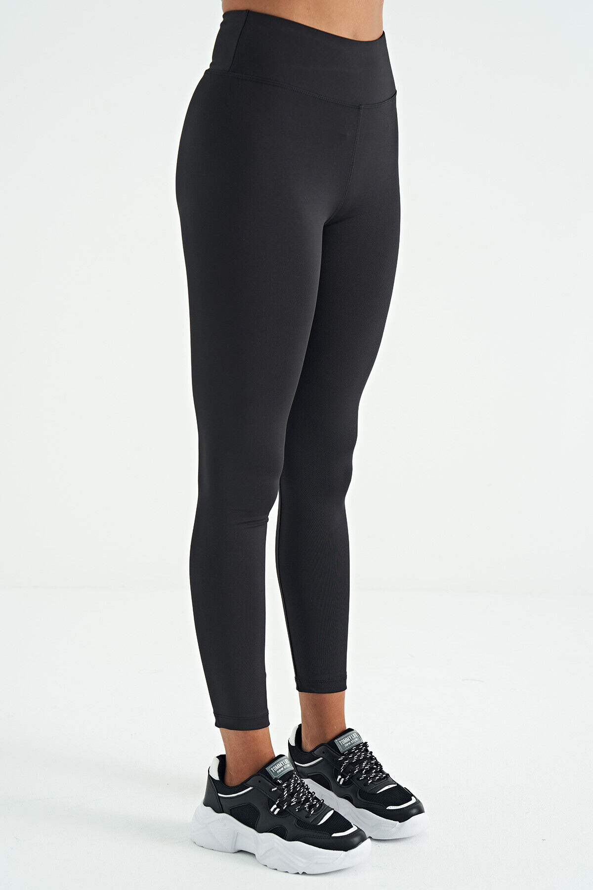 TommyLife Siyah Logo Baskı Detaylı Yüksek Bel Dalgıç Kumaş Slim Fit Kadın Tayt - 94627