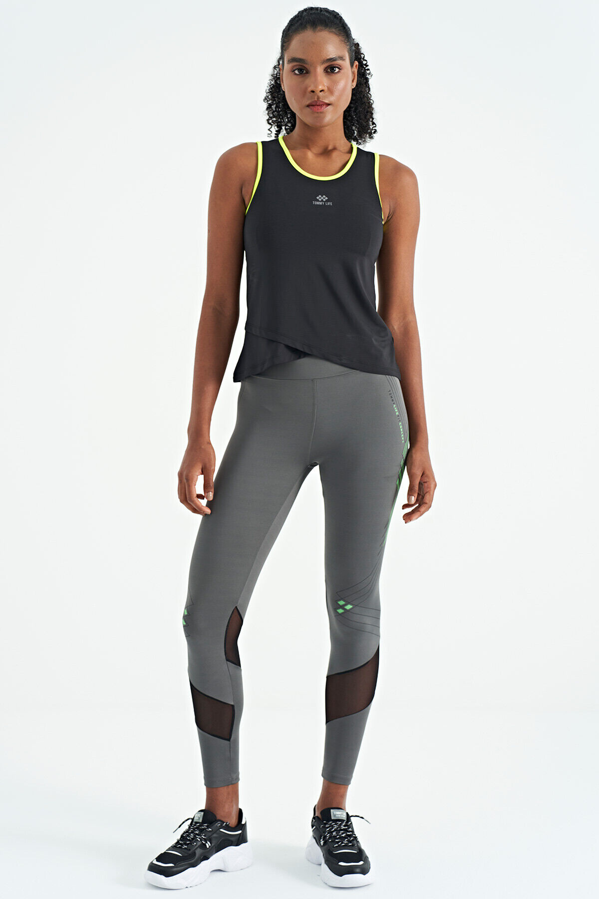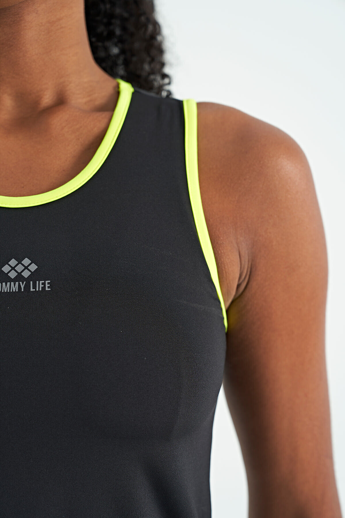 TommyLife Siyah Logo Baskılı Biye Şeritli Standart Kalıp Kadın Spor Atlet - 97255