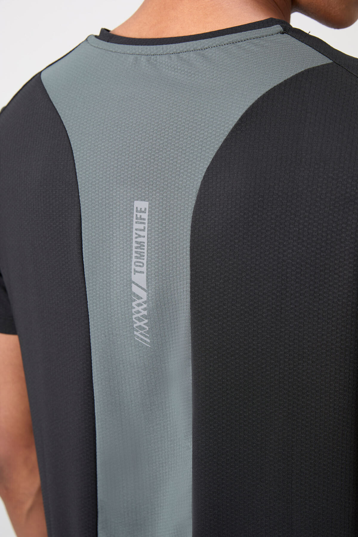 TommyLife Siyah Nefes Alan Dokulu İnce Esnek Standart Fit Erkek Performans T-Shirt - 88387