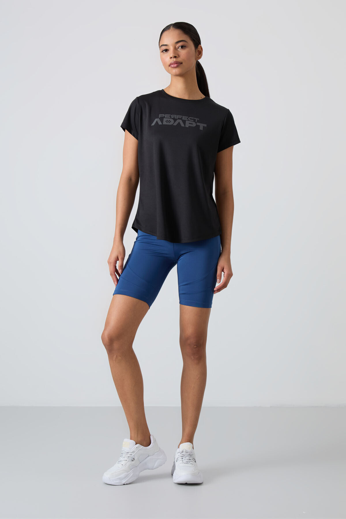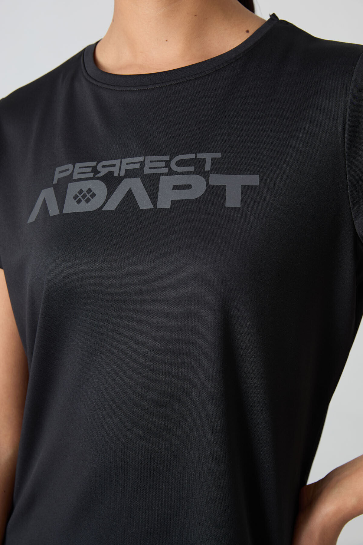 TommyLife Siyah Nefes Alan Dokulu İnce Esnek Standart Fit Performans Kadın T-Shirt - 97283