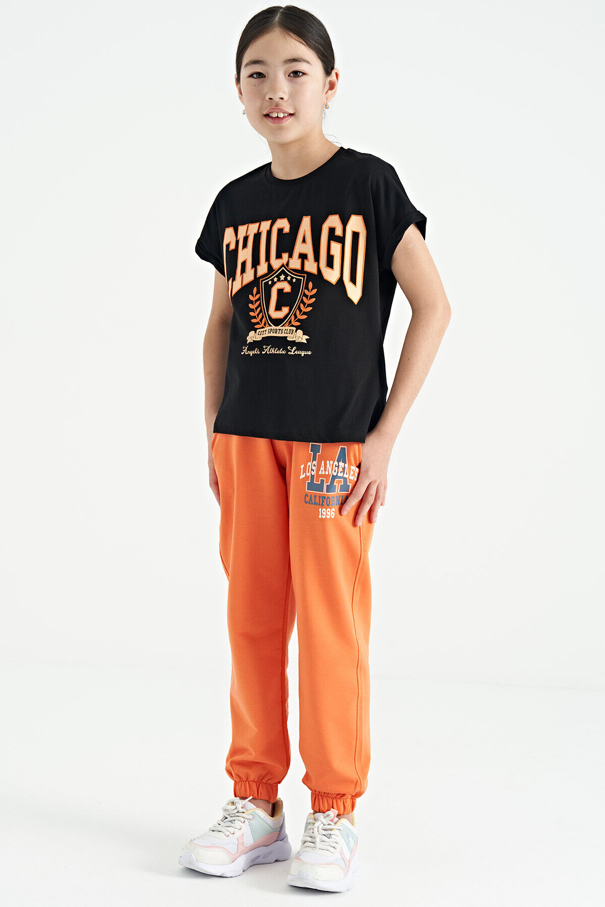 BEDENLER 7-8 8-9 9-10 10-11 11-12 12-13 13-14 14-15 OMUZDAN BOY 46 48 50 52 54 55 57 59 GÖĞÜS 39 40 41 42 43 44 45 46 ETEK UCU 39,5 40,5 41,5 42,5 43,5 44,5 45,5 46,5 OMUZDAN OMUZA 47,5 48,6 49,8 51 52,2 53,4 54,6 55,8 Boy: 140 cm / Göğüs: 63 cm / Bel: 61 cm / Basen: 70 cm - 9-10 Yaş Kumaş Bilgisi : %94 Pamuk %6 Elastan / 36/1 Süprem