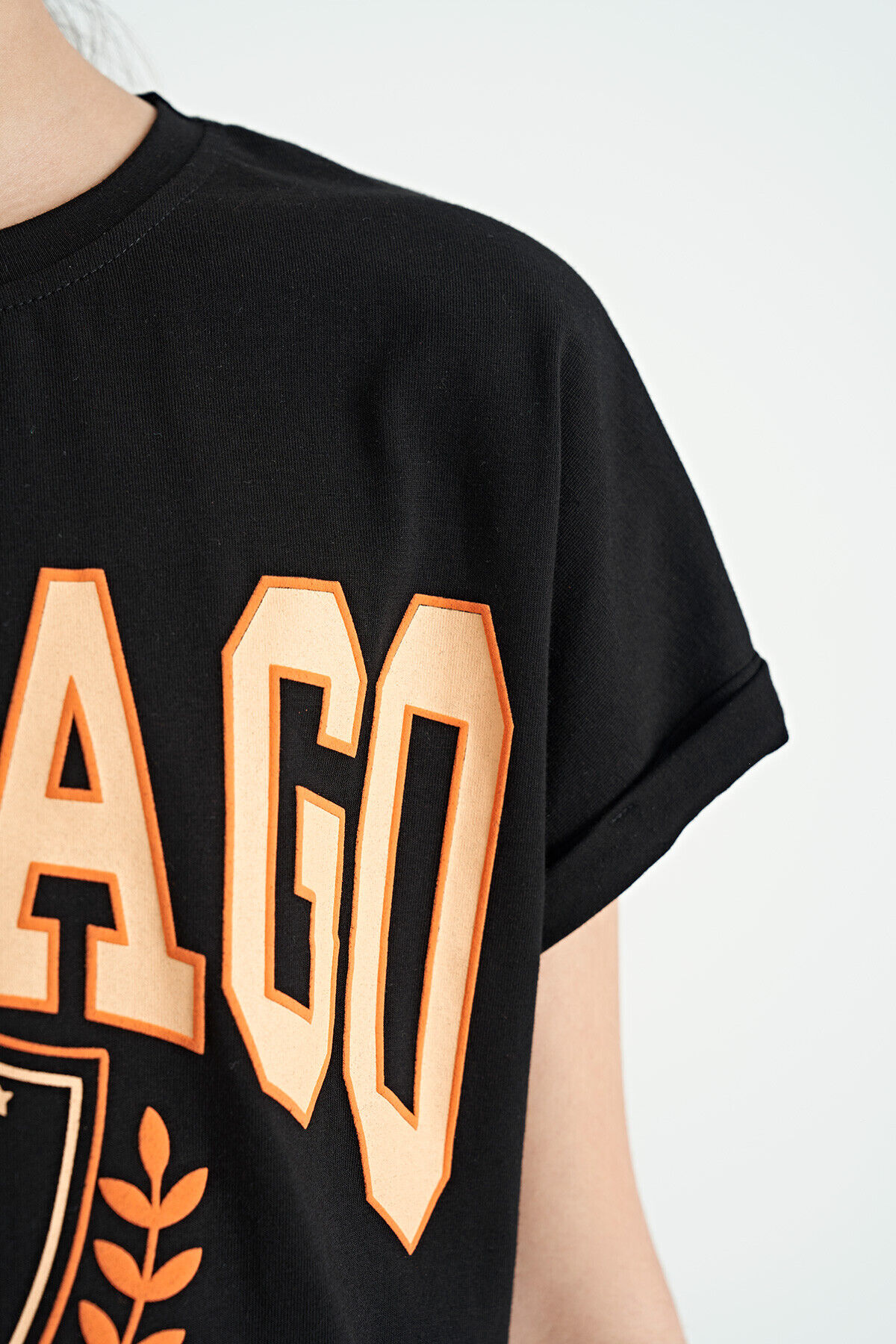 TommyLife Siyah O Yaka Düşük Omuzlu Rahat Form Kısa Kollu Kız Çocuk T-Shirt - 75128