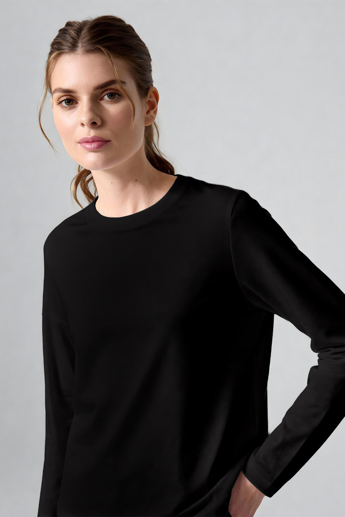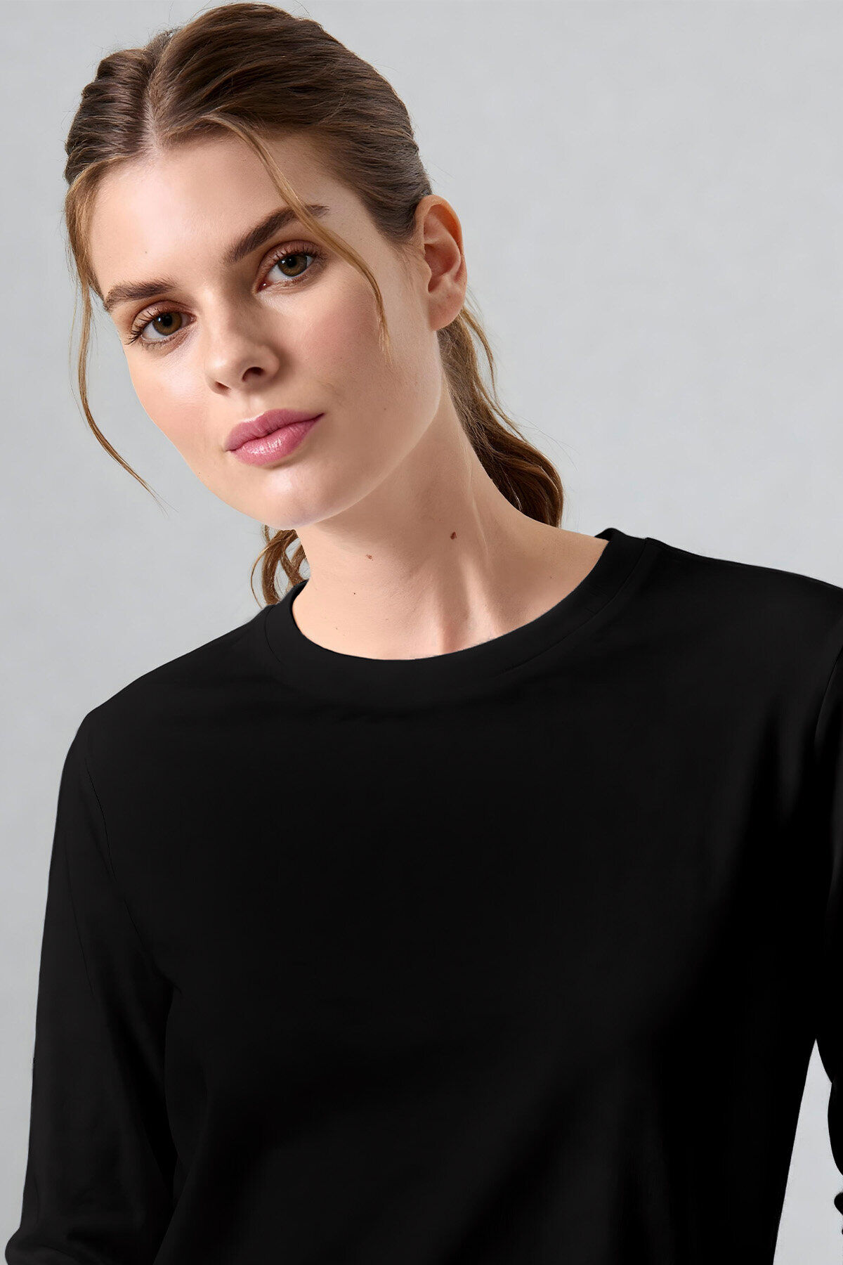 TommyLife Siyah O Yaka Standart Fit Uzun Kollu Basic Kadın T-Shirt - 97312