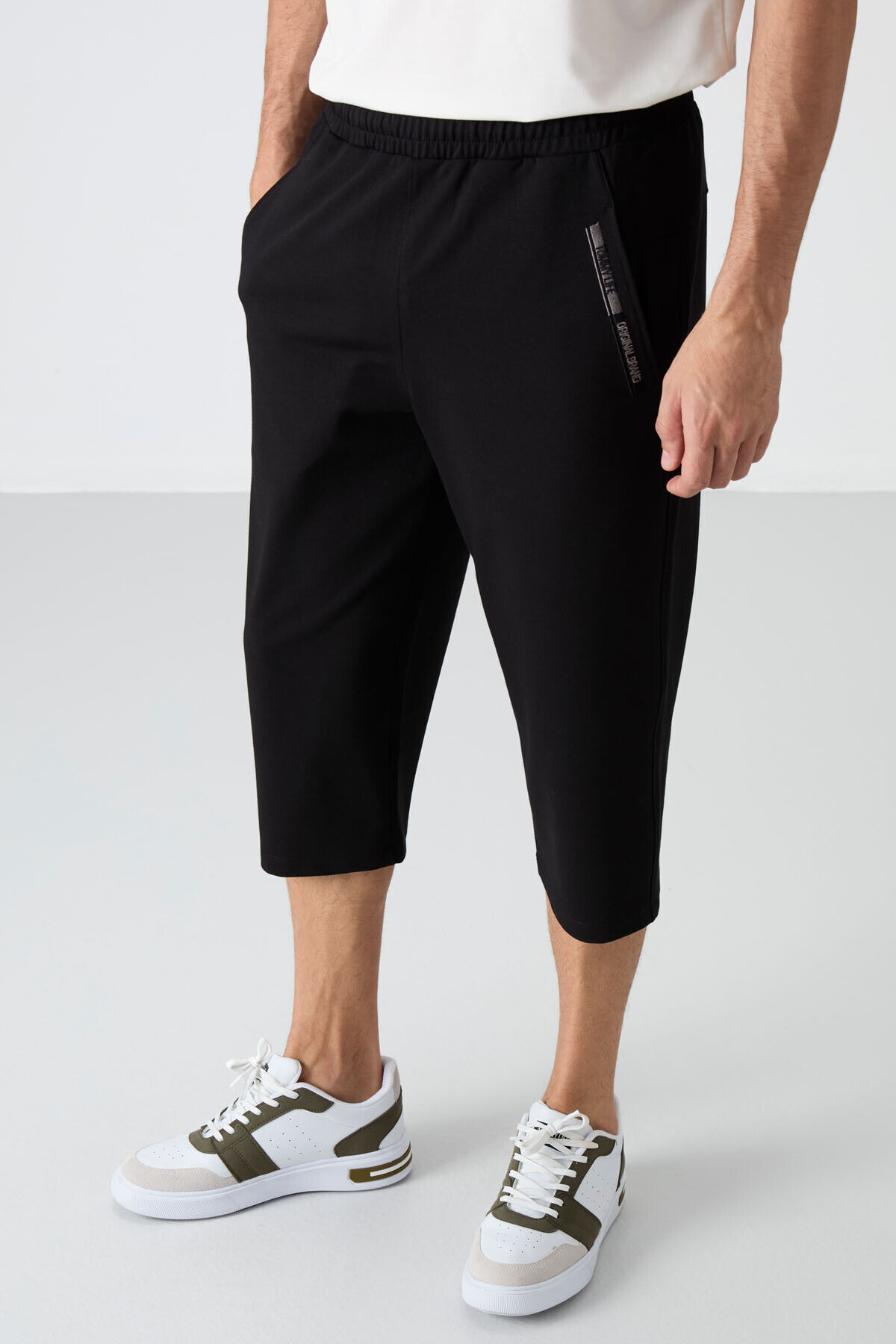 TommyLife Siyah Ön Cep Detaylı Standart Kalıp Klasik Paça Erkek Kapri - 83092
