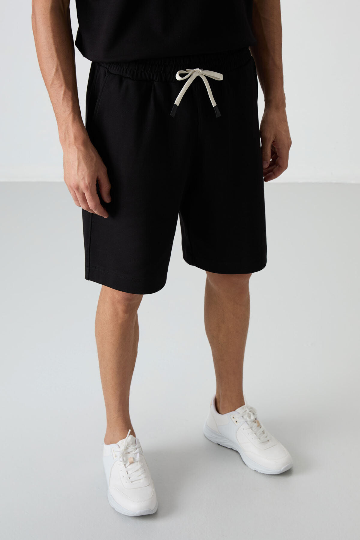 Siyah Oversize Fit Basic Erkek Şort Takım - 85292