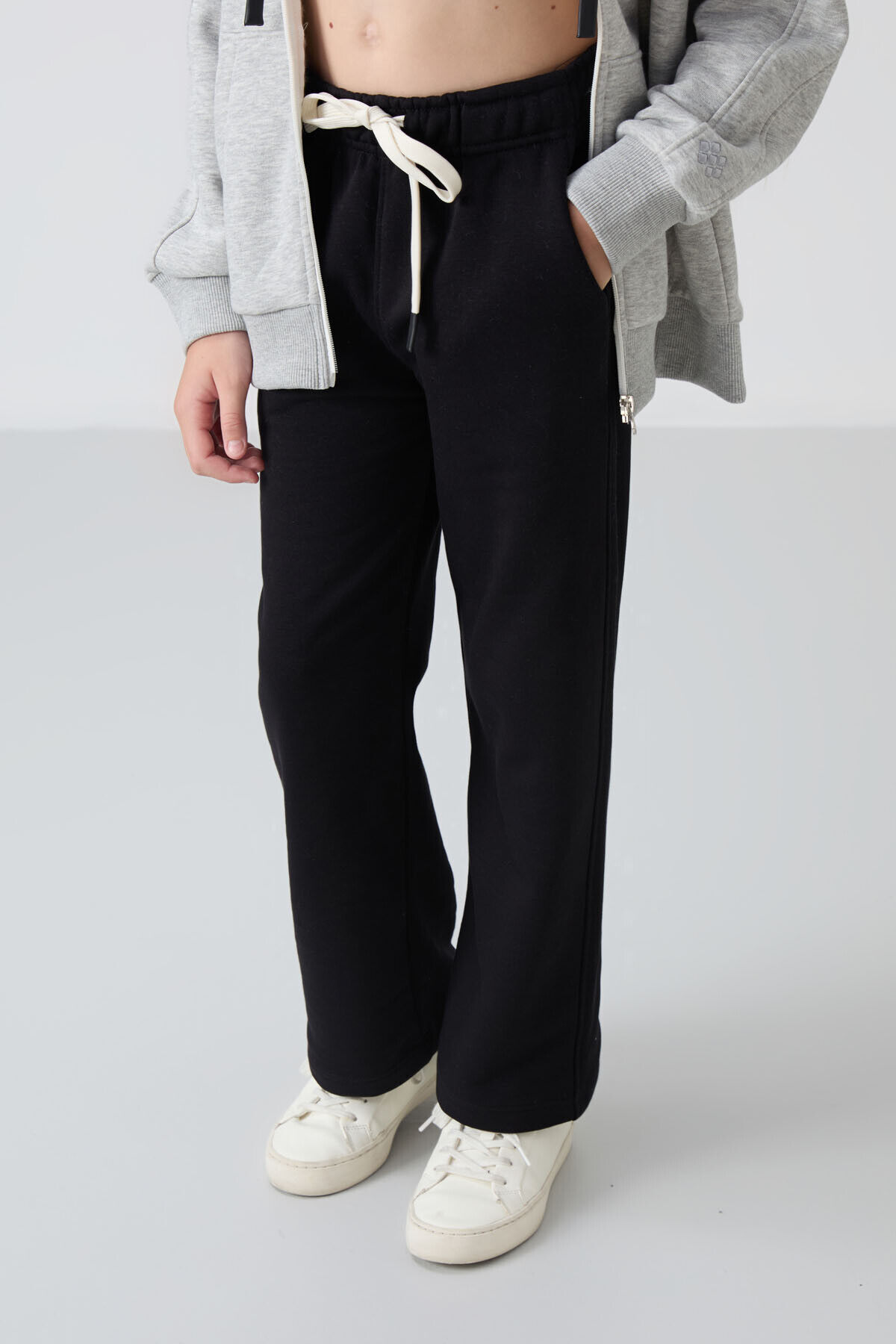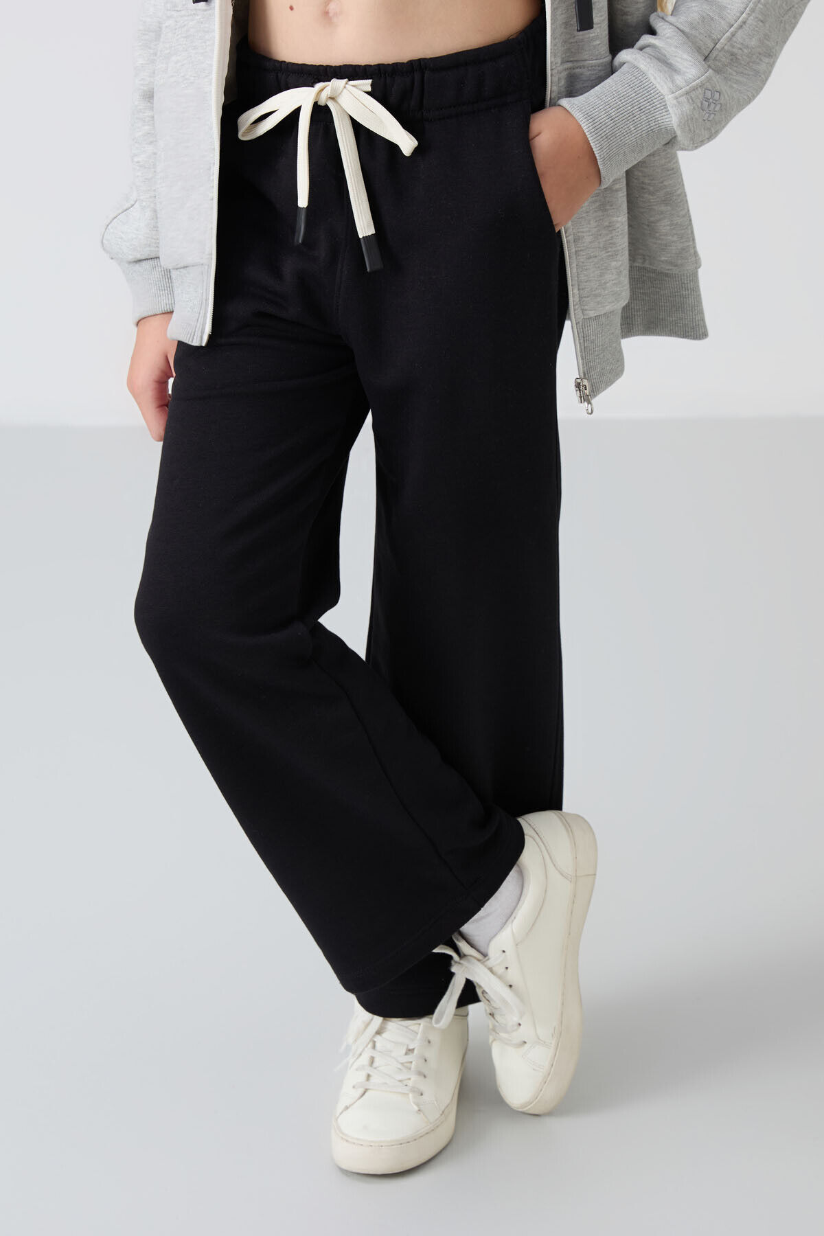 TommyLife Siyah Pamuklu İçi Tüylü Yumuşak Dokulu Standart Fit Nakışlı Kız Çocuk Eşofman Alt - 75146