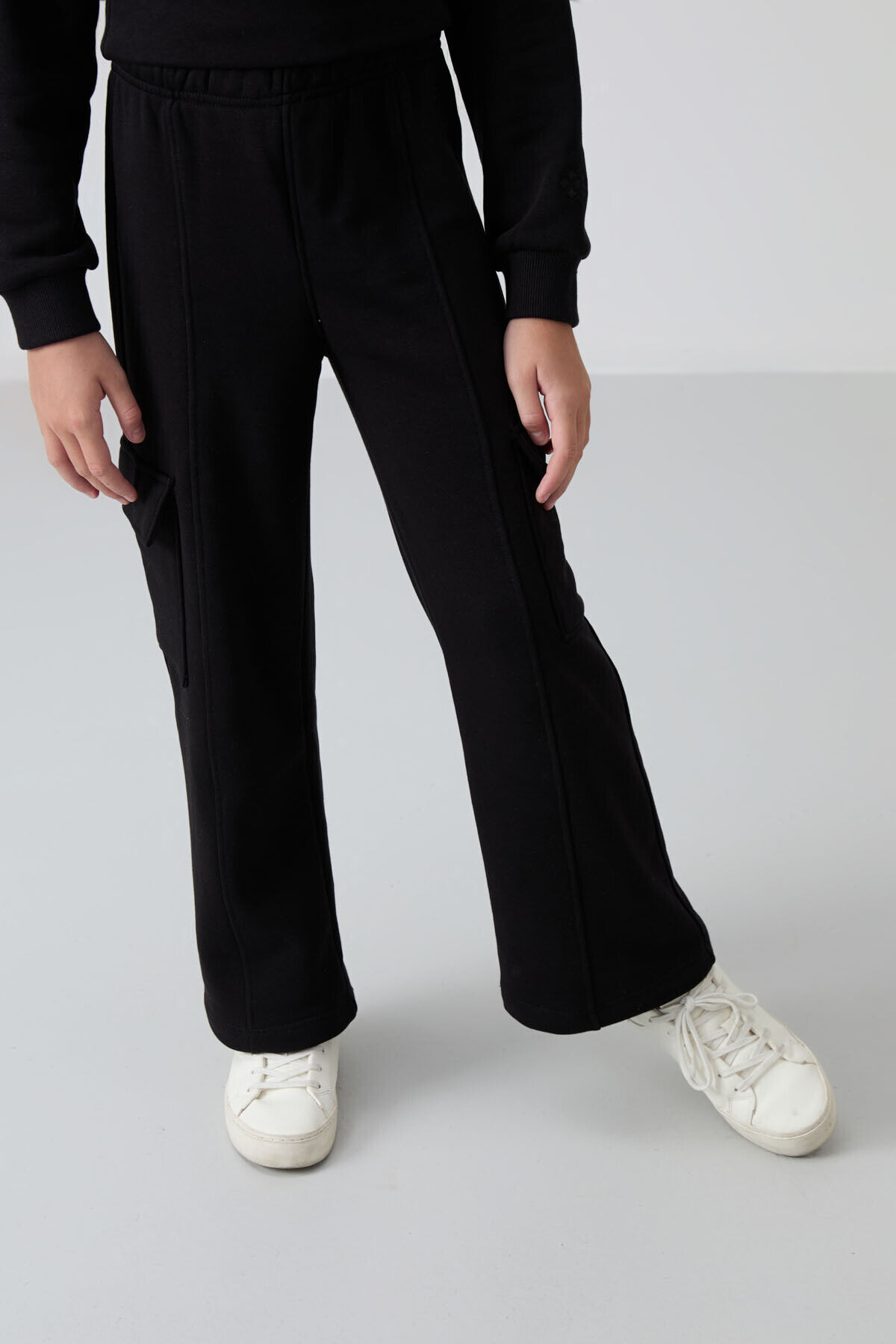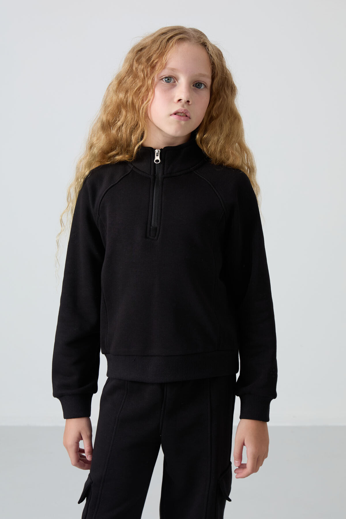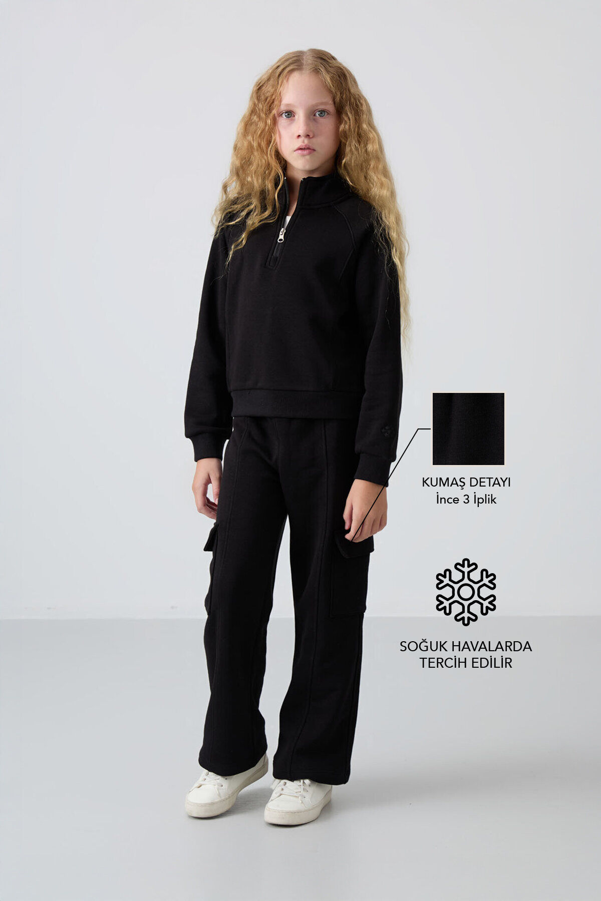 TommyLife Siyah Pamuklu İçi Tüylü Yumuşak Dokulu Standart Fit Nakışlı Kız Çocuk Eşofman Takım - 75159