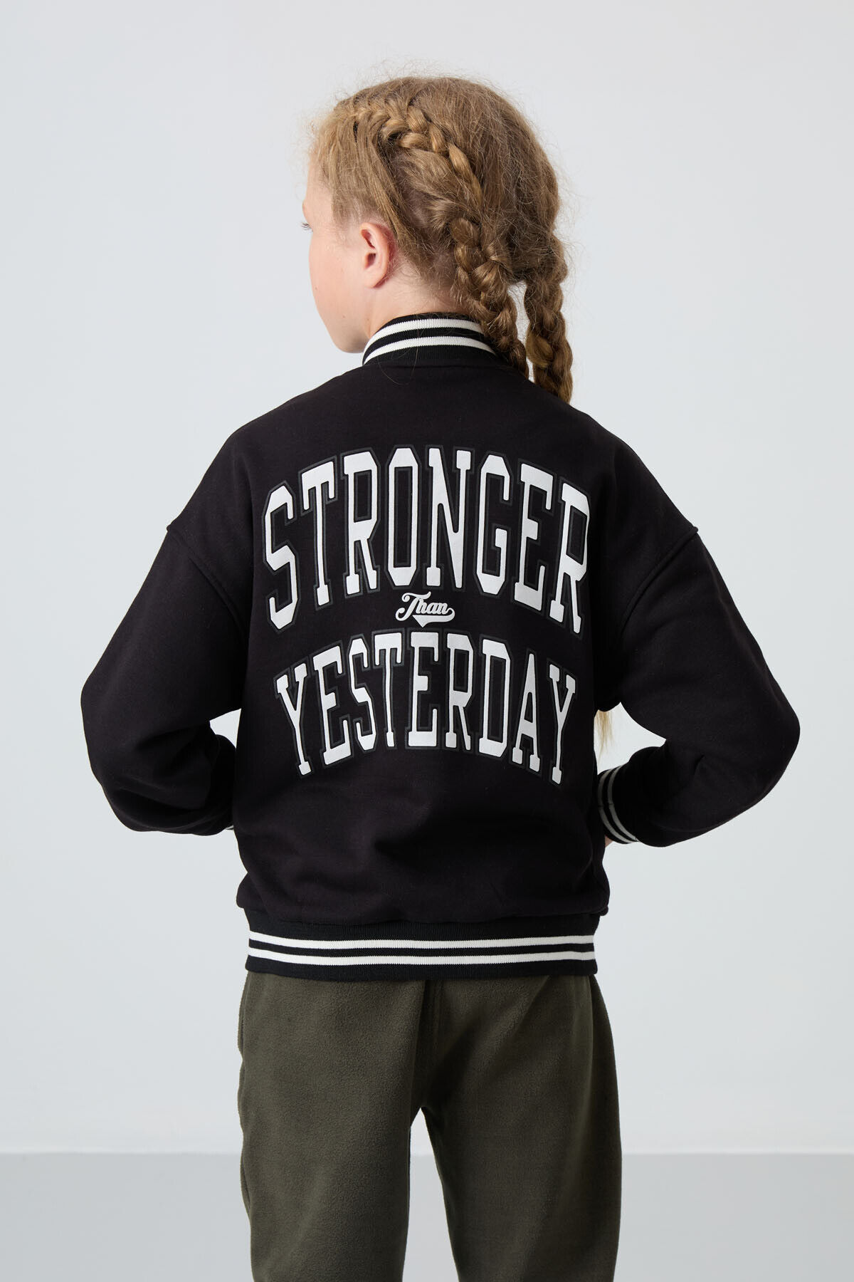 TommyLife Siyah Pamuklu İçi Tüylü Yumuşak Dokulu Standart Fit Nakışlı Kız Çocuk Kolej Ceket - 75163