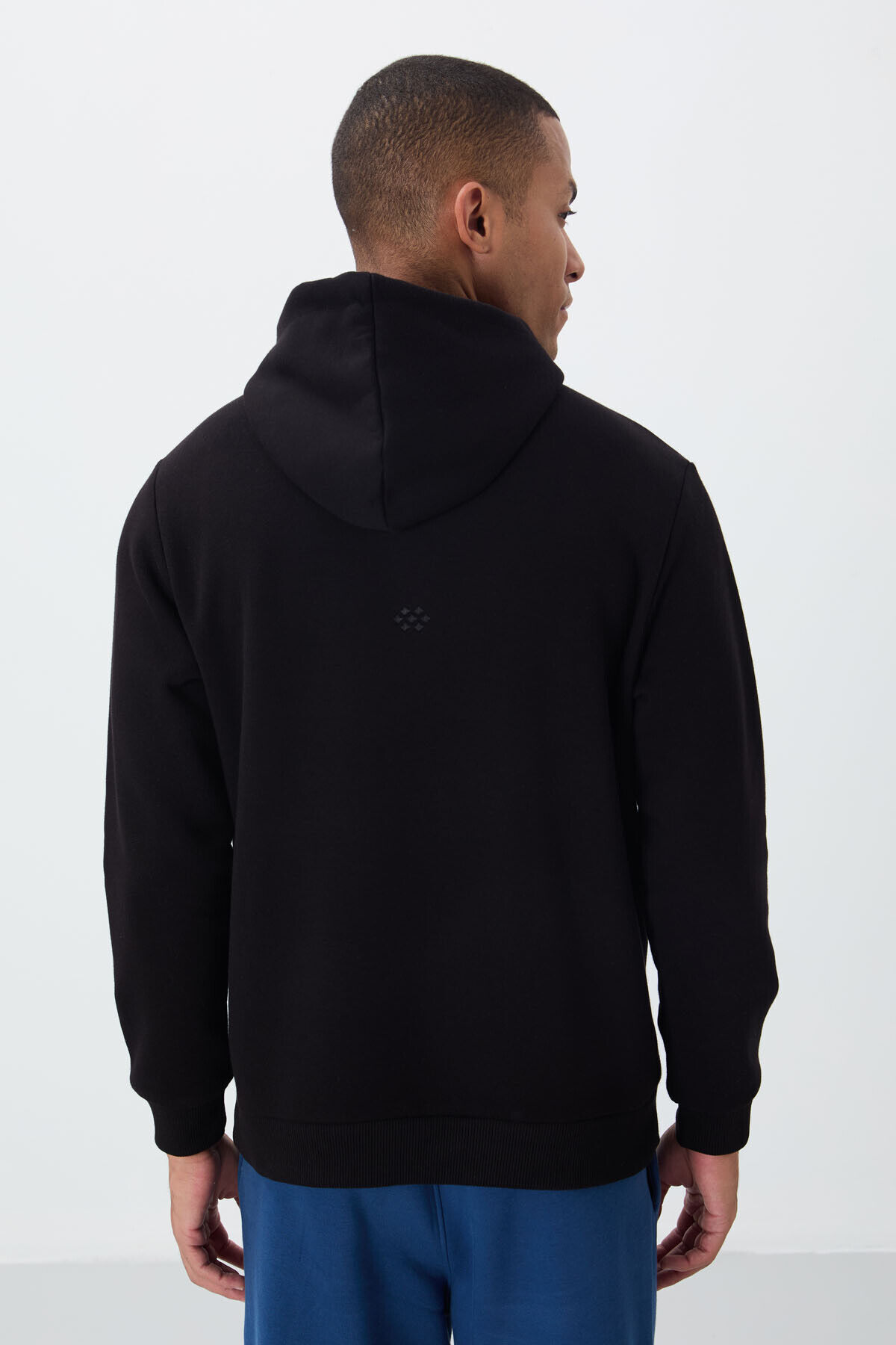 TommyLife Siyah Pamuklu Kalın İçi Tüylü Yumuşak Dokulu Comfort Fit Nakışlı Erkek Sweatshirt - 88419