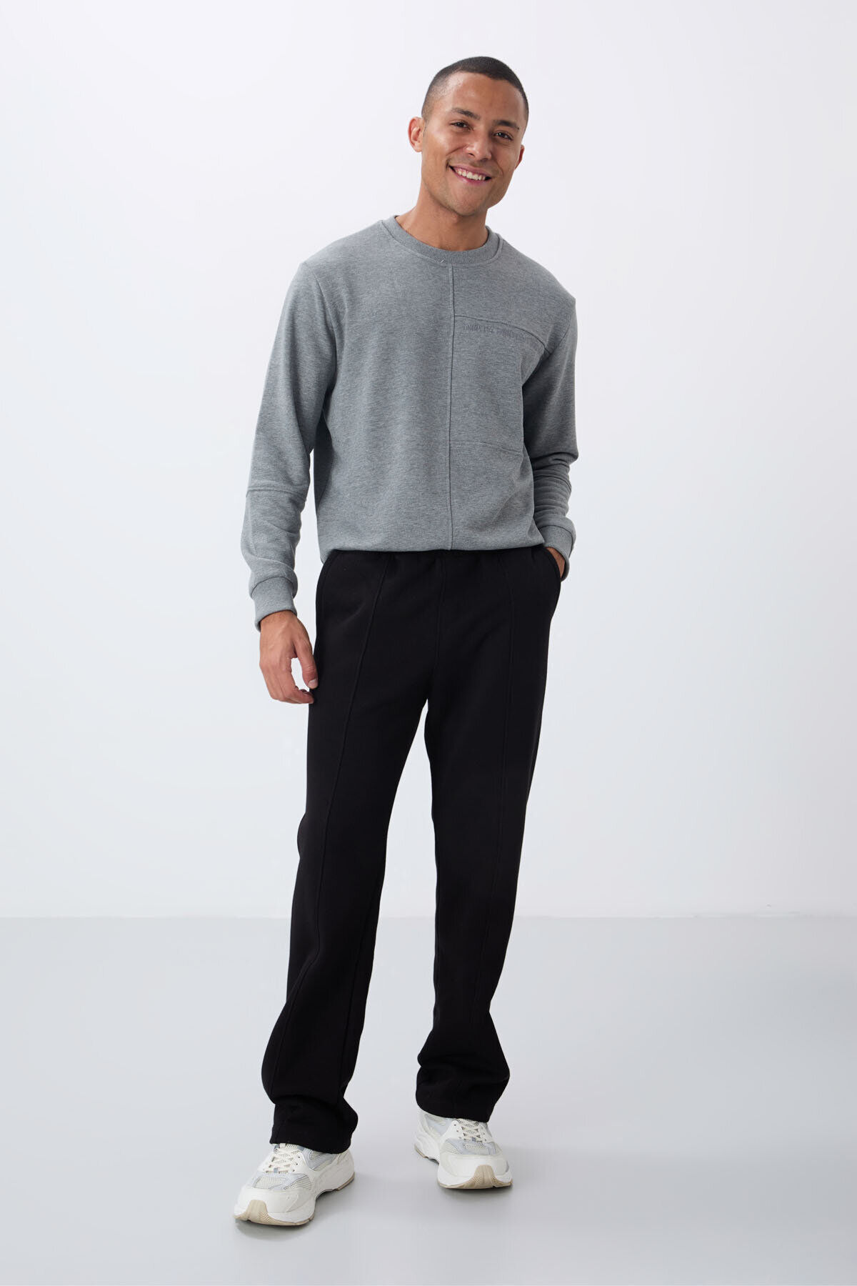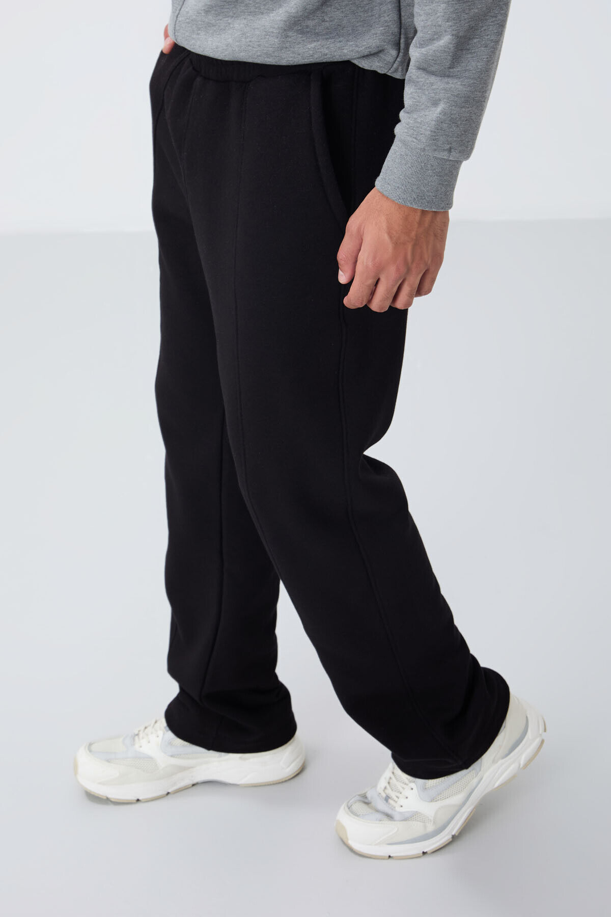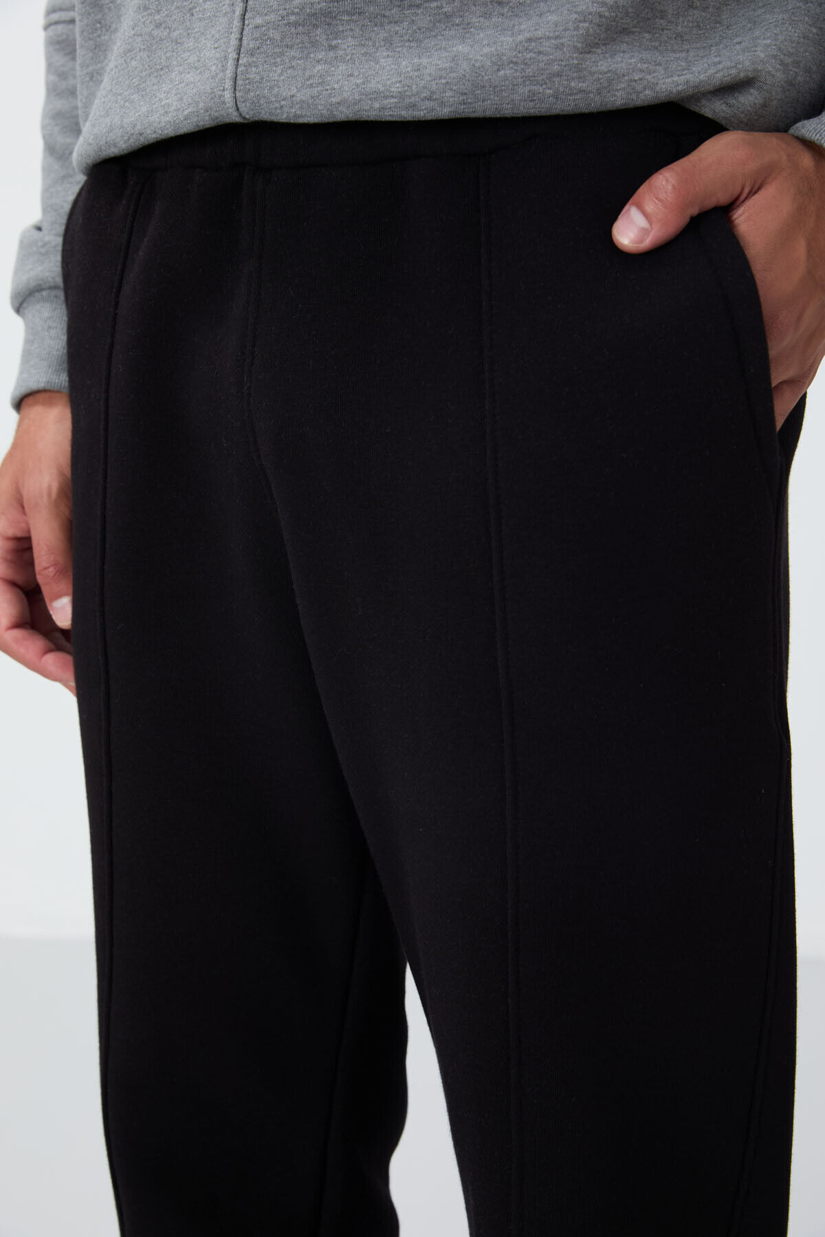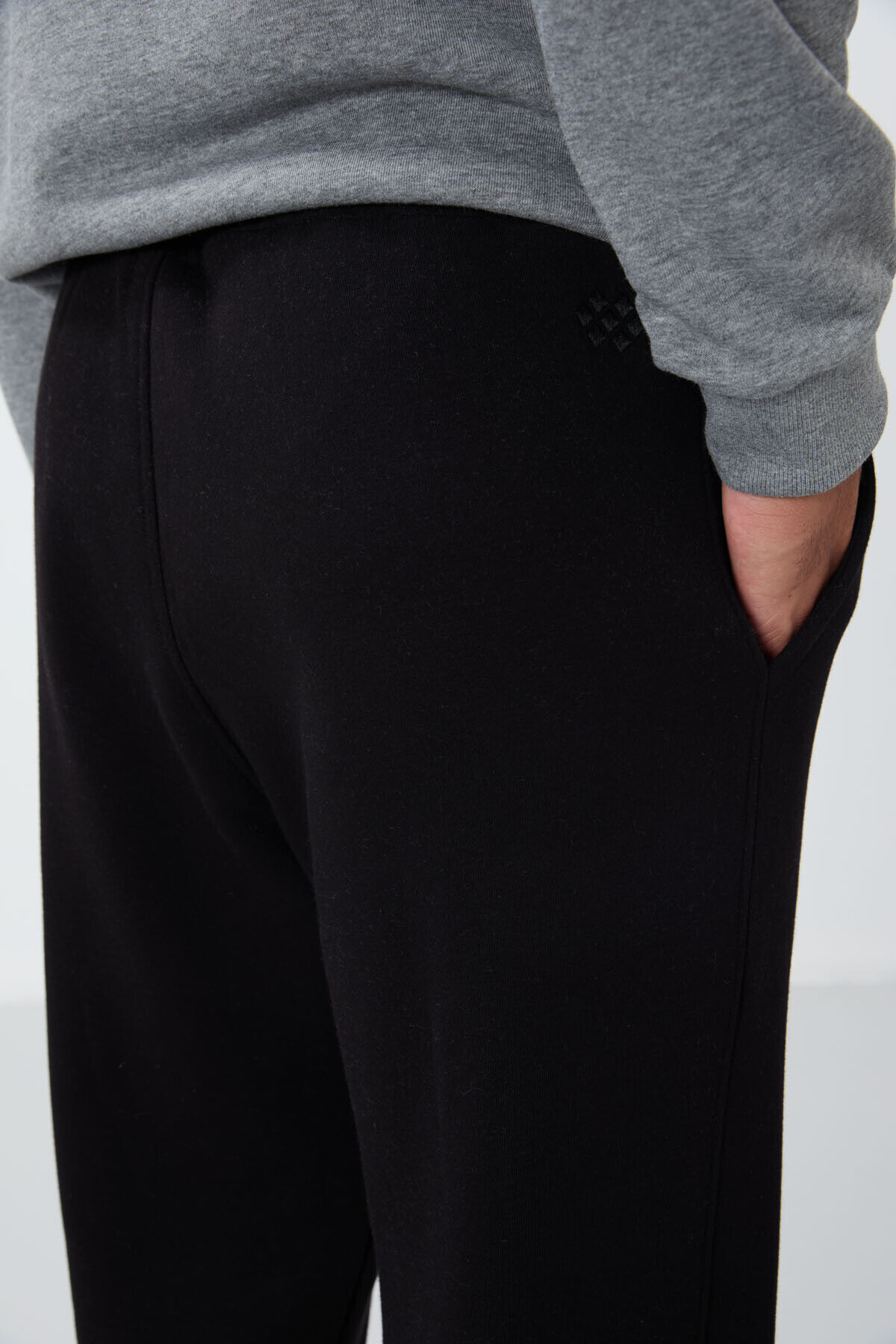 TommyLife Siyah Pamuklu Kalın İçi Tüylü Yumuşak Dokulu Oversize Nakışlı Erkek Eşofman Altı -82146