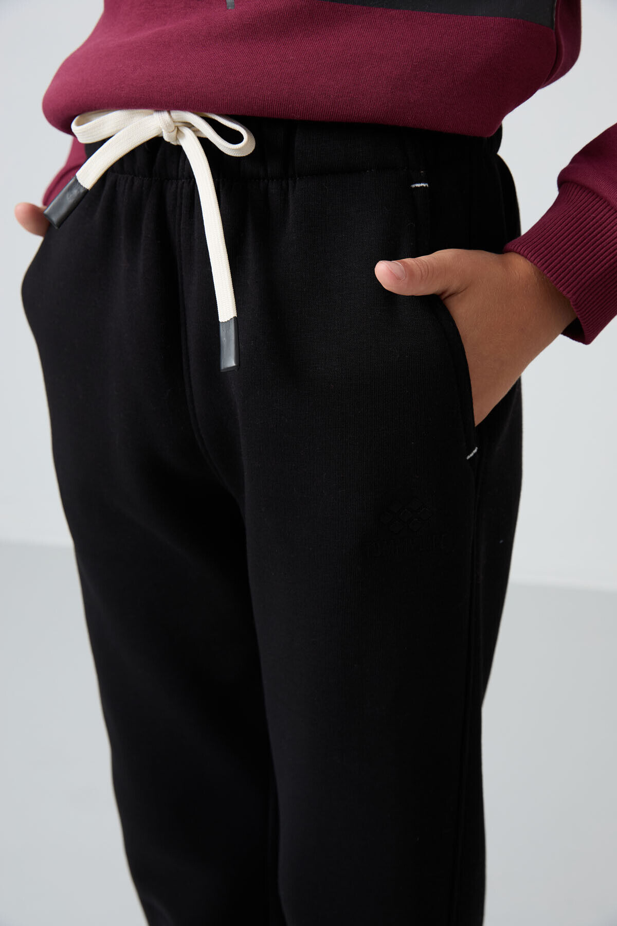 TommyLife Siyah Pamuklu Kalın İçi Tüylü Yumuşak Dokulu Standart Fit Baskılı Erkek Çocuk Eşofman Alt - 11225