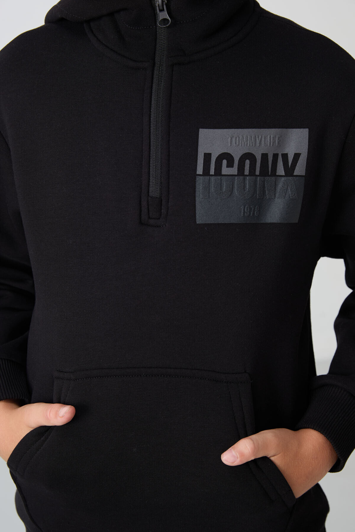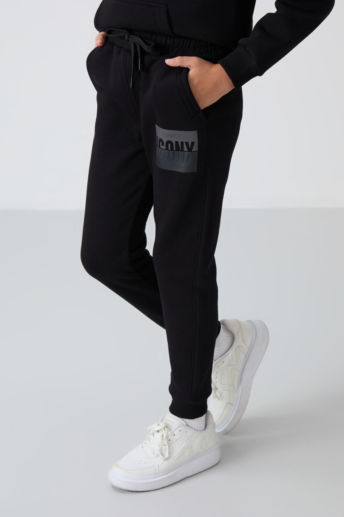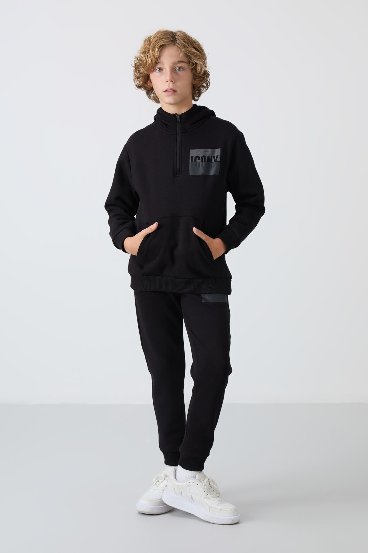 TommyLife Siyah Pamuklu Kalın İçi Tüylü Yumuşak Dokulu Standart Fit Baskılı Erkek Çocuk Eşofman Takım - 11246
