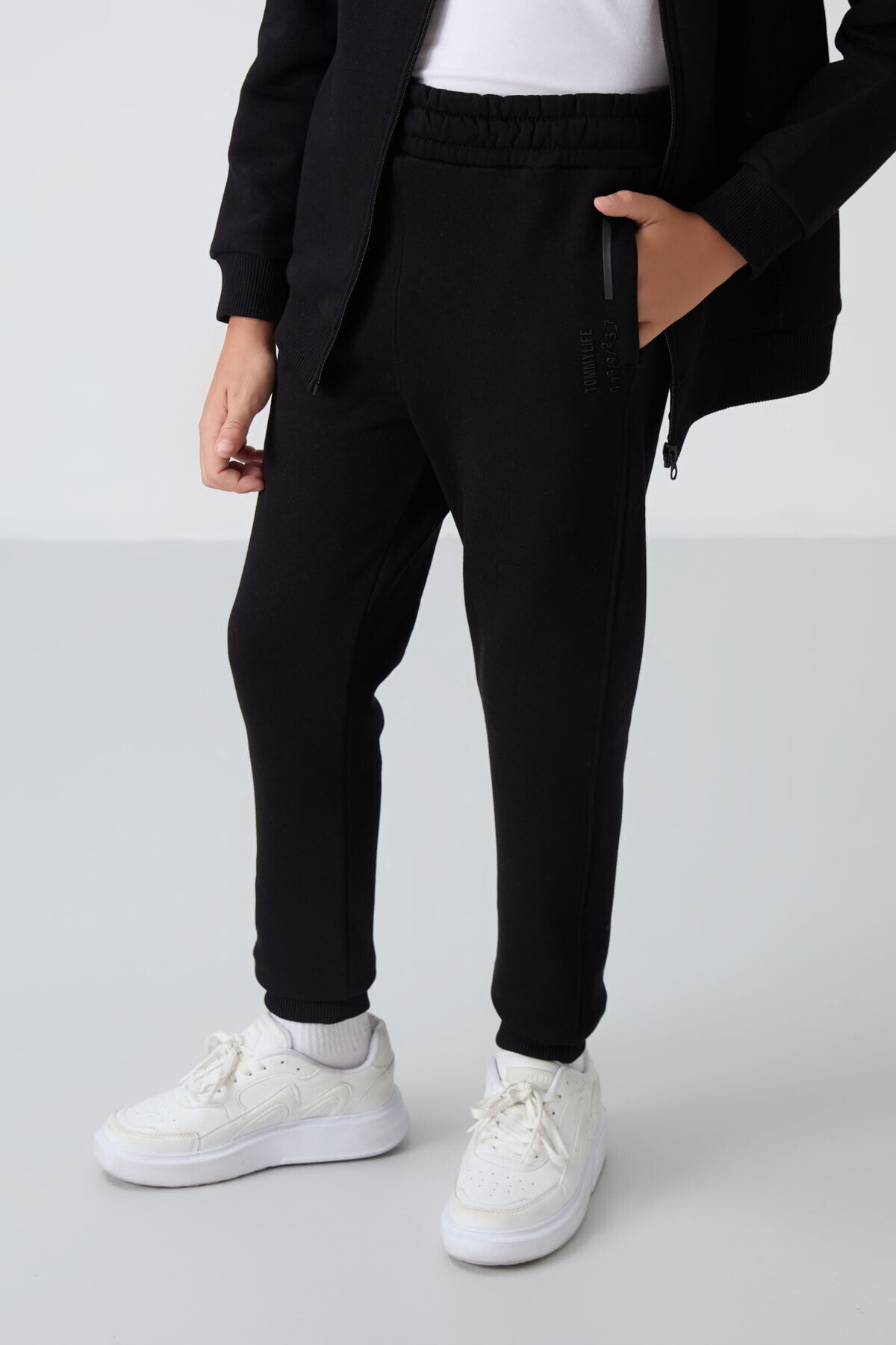 TommyLife Siyah Pamuklu Kalın İçi Tüylü Yumuşak Dokulu Standart Fit Nakışlı Erkek Çocuk Eşofman Takım - 11240