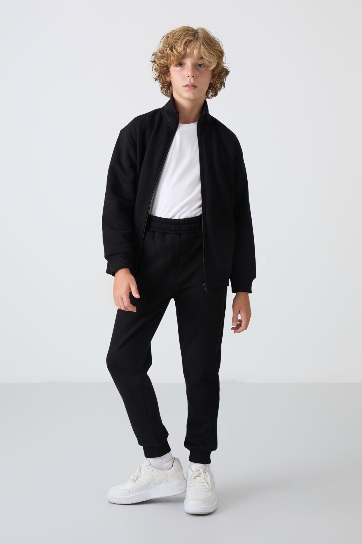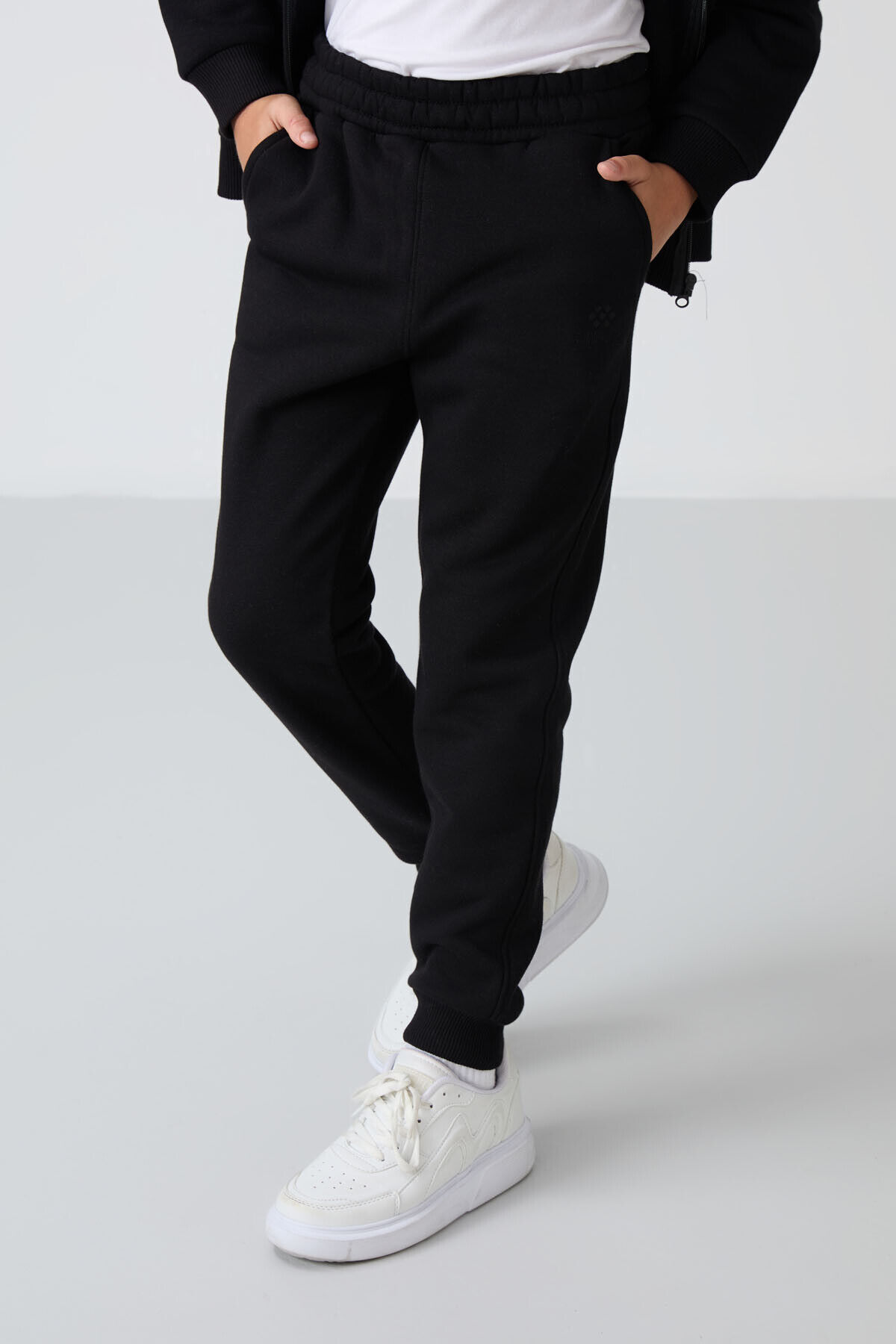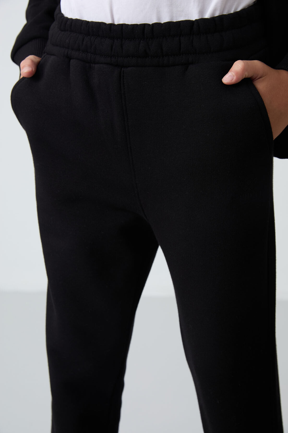 TommyLife Siyah Pamuklu Kalın İçi Tüylü Yumuşak Dokulu Standart Fit Nakışlı Erkek Çocuk Eşofman Takım - 11256