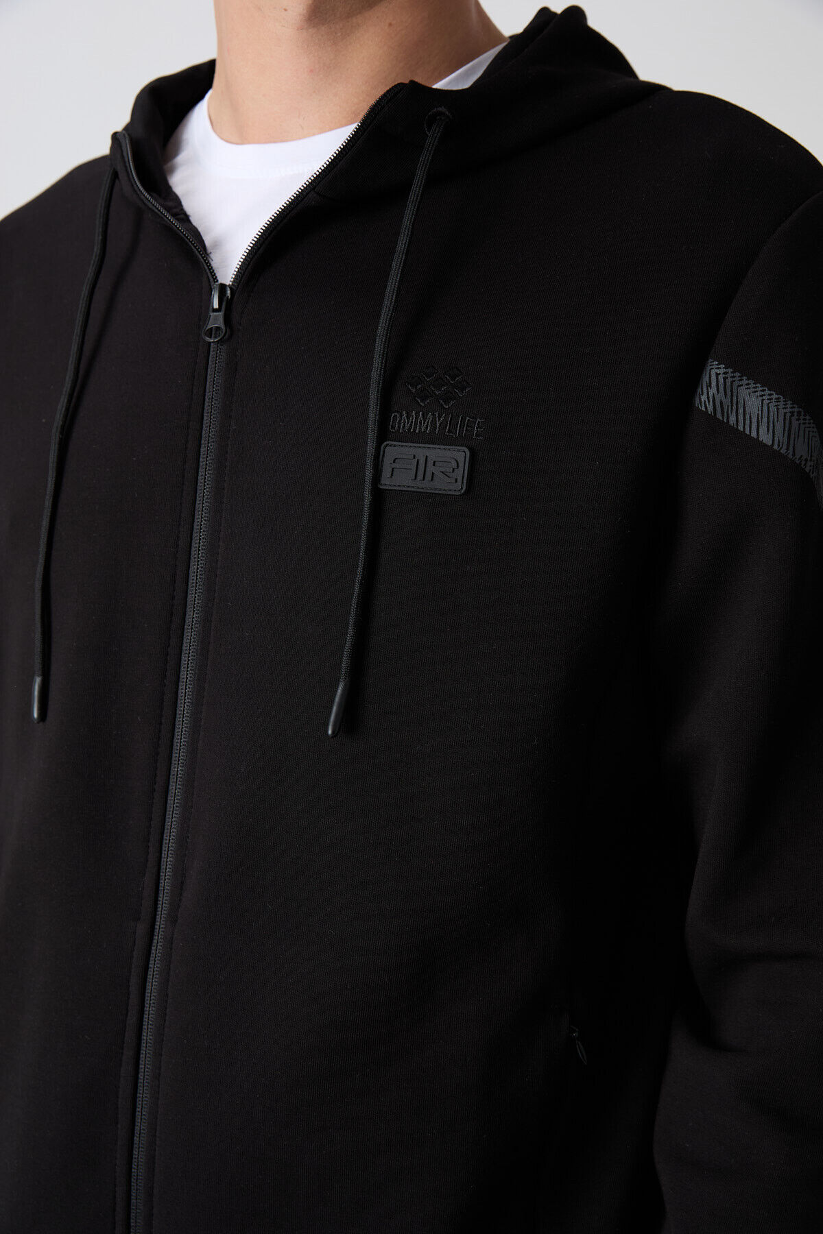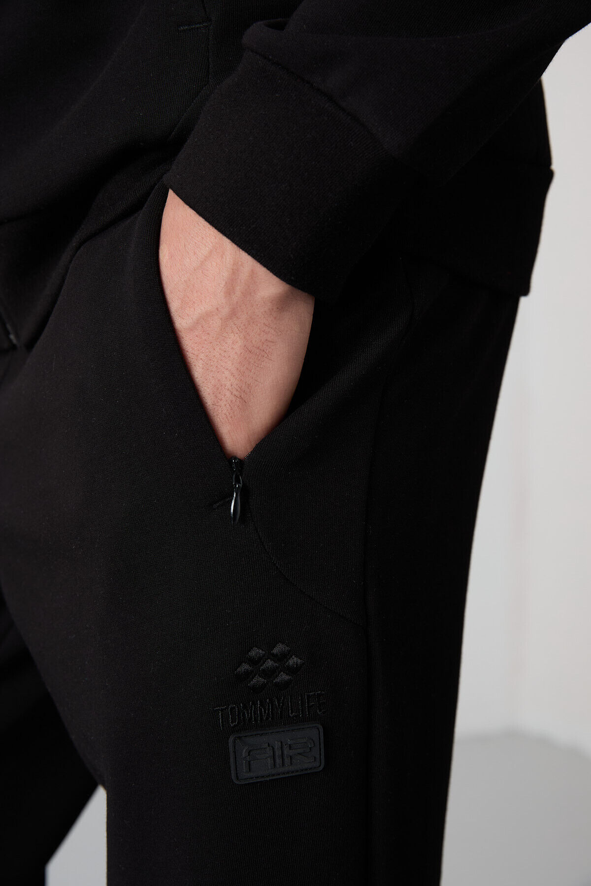 TommyLife Siyah Pamuklu Kalın Yumuşak Dokulu Comfort Fit Baskılı Erkek Eşofman Takım - 85236
