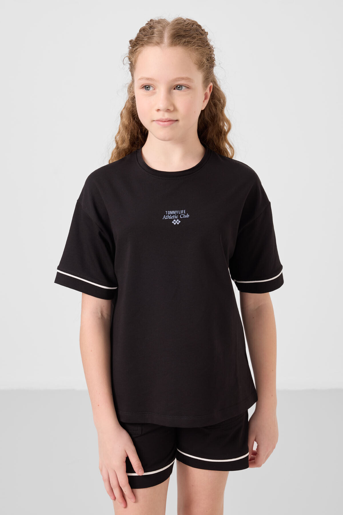 TommyLife Siyah Pamuklu Yumuşak Dokulu Standart Fit Basic Kız Çocuk Şort Takım - 75183