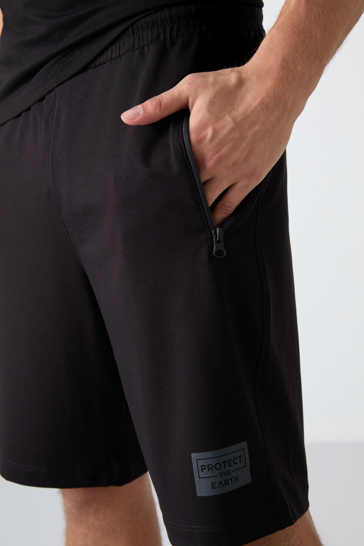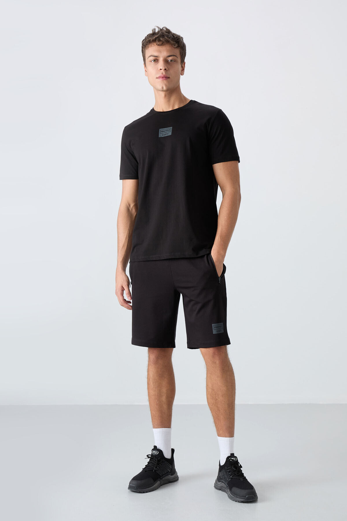 TommyLife Siyah Pamuklu Yumuşak Dokulu Standart Fit Baskılı Erkek Şortlu Takım - 85243
