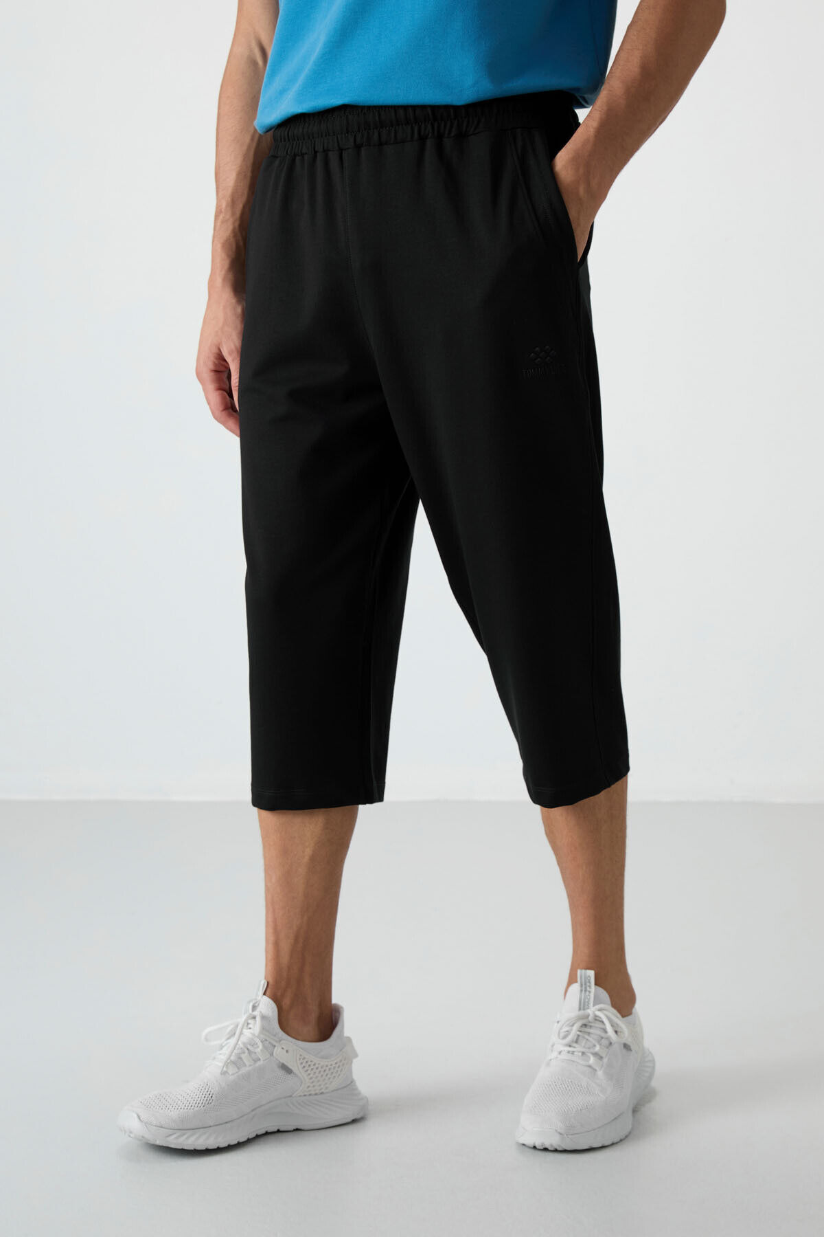 TommyLife Siyah Pamuklu Yumuşak Dokulu Standart Fit Nakışlı Erkek Kapri - 83102