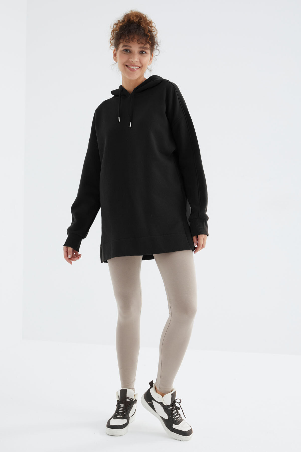 TommyLife Siyah Reglan Kol Basic Kapüşonlu Oversize Sweatshirt Tunik - 97242