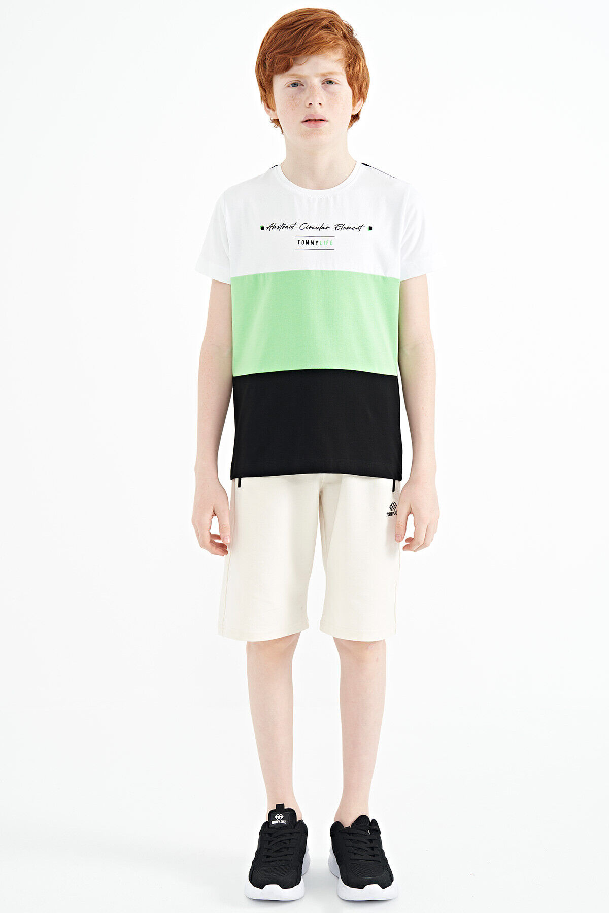 TommyLife Siyah Renk Bloklu O Yaka Baskı Detaylı Standart Kalıp Erkek Çocuk T-Shirt - 11135