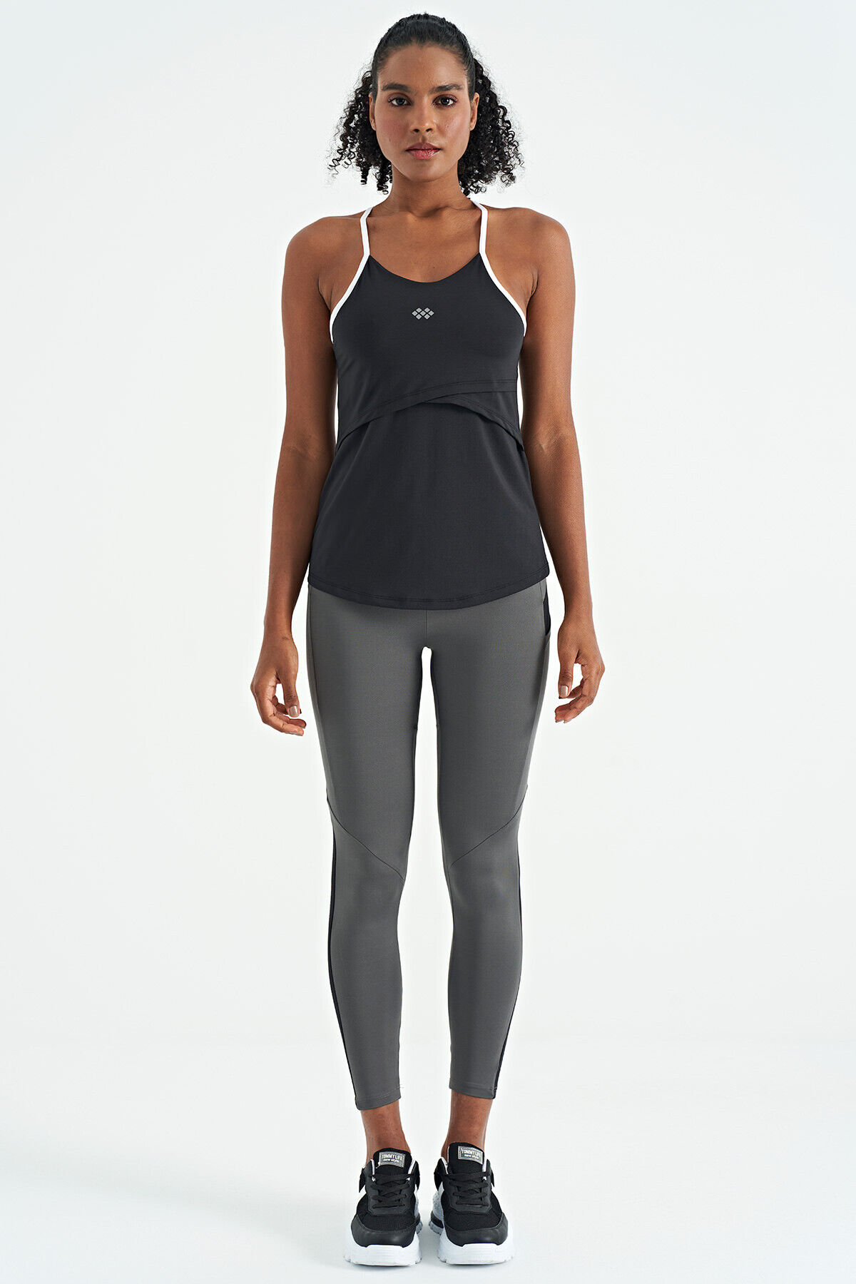 TommyLife Siyah Sırt Çarpraz Askı Detaylı Standart Kalıp Kadın Spor Atlet - 97261