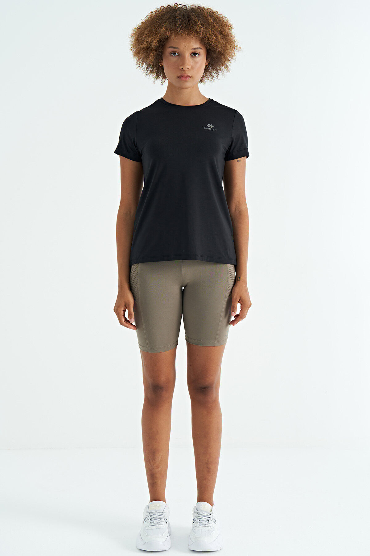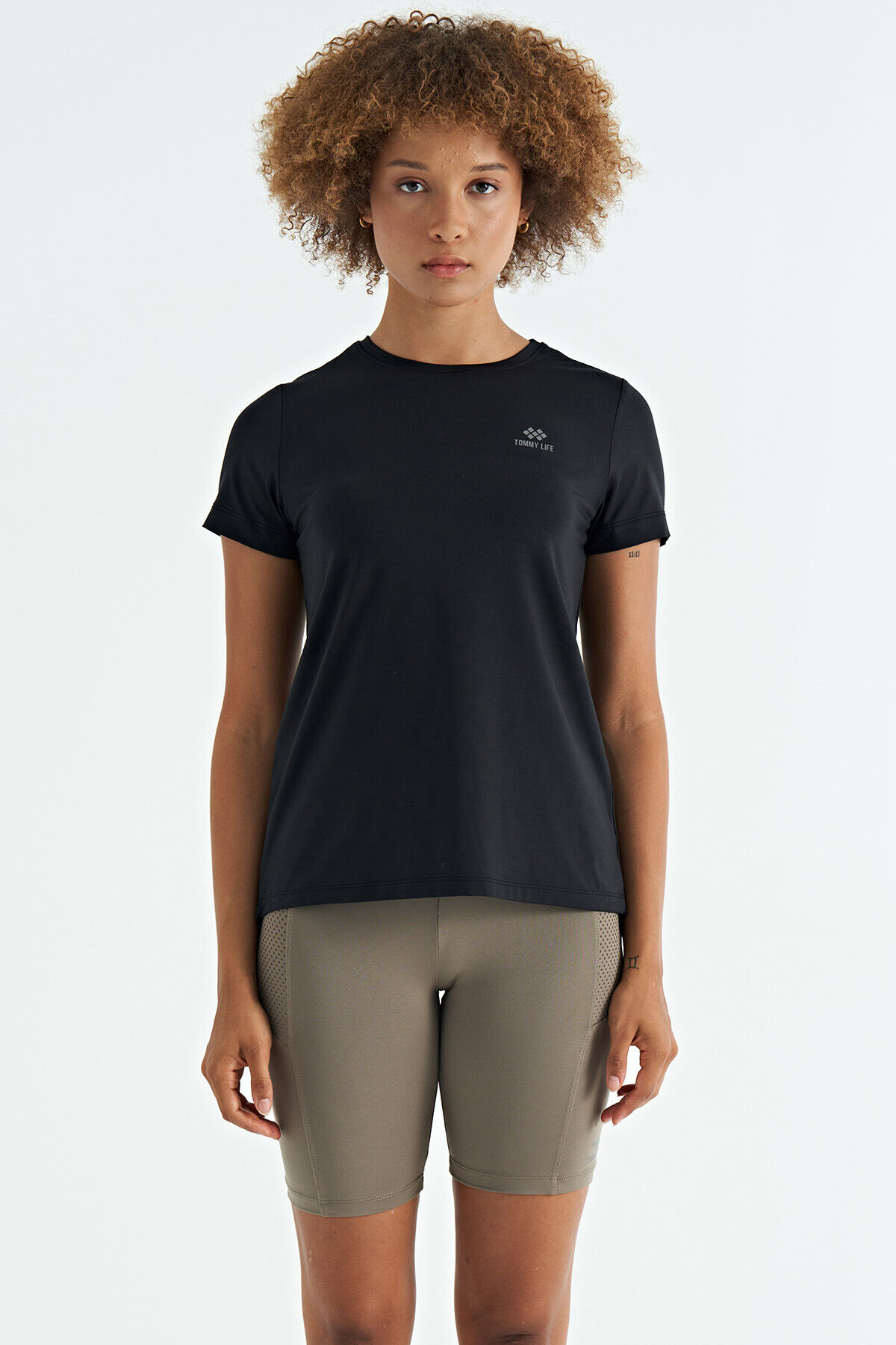 TommyLife Siyah Sırt Yırtmaç Detaylı O Yaka Kısa Kollu Standart Kalıp Kadın T-Shirt - 97267
