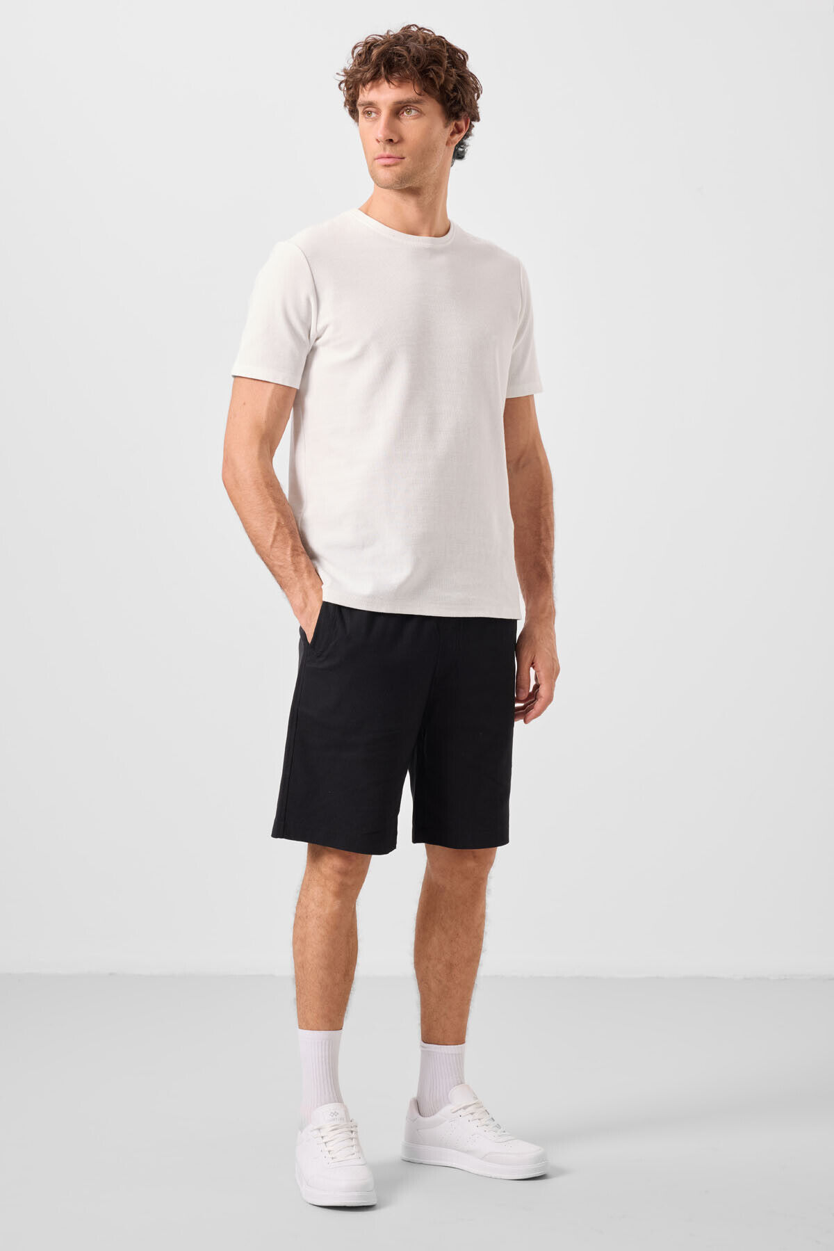 TommyLife Siyah Standart Fit Dokuma Hafif Esnek Chino Erkek Şort - 81289