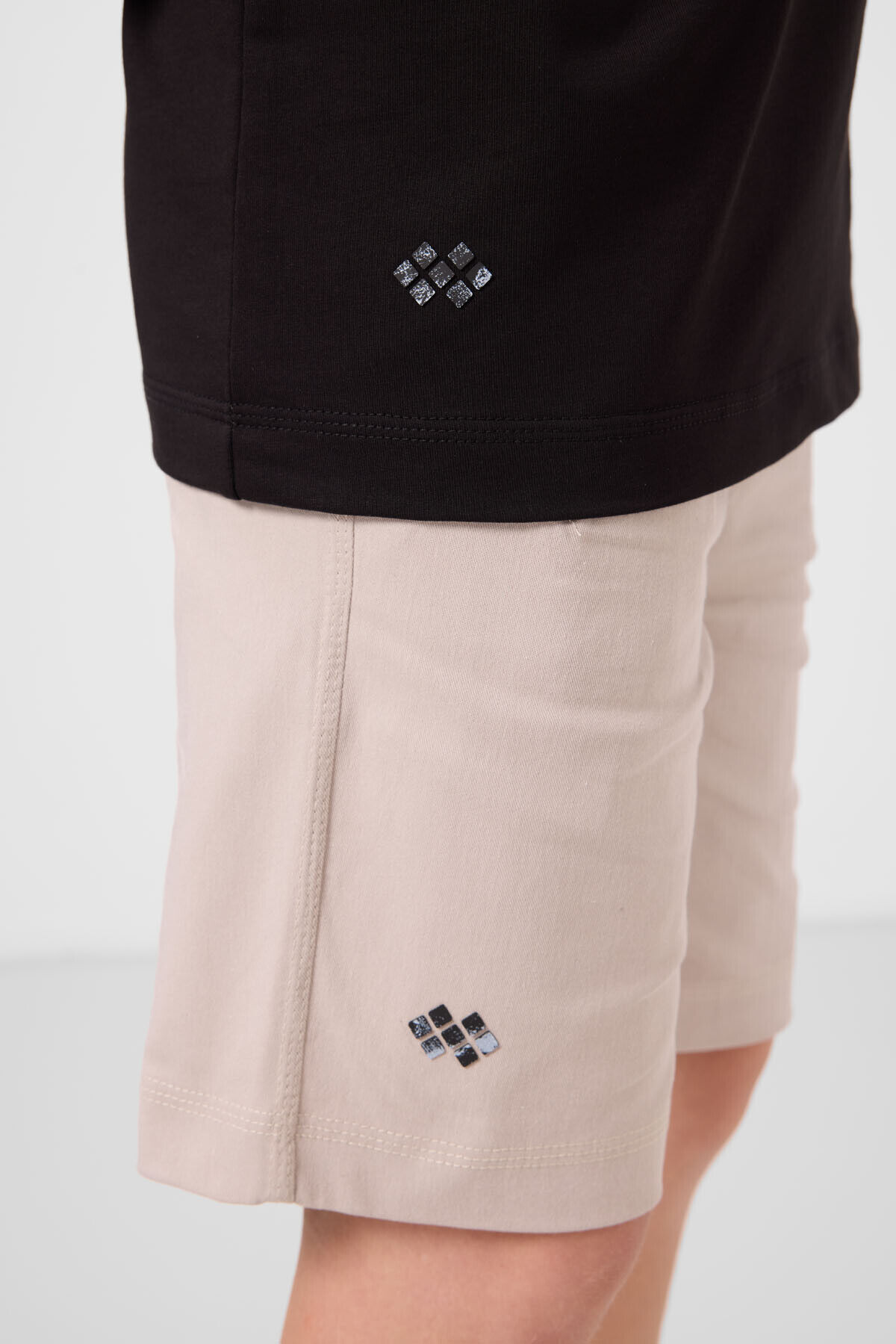 TommyLife Siyah-Taş Pamuklu Oversize Fit Dokuma Hafif Esnek Chino Erkek Çocuk Şort Takım - 11277