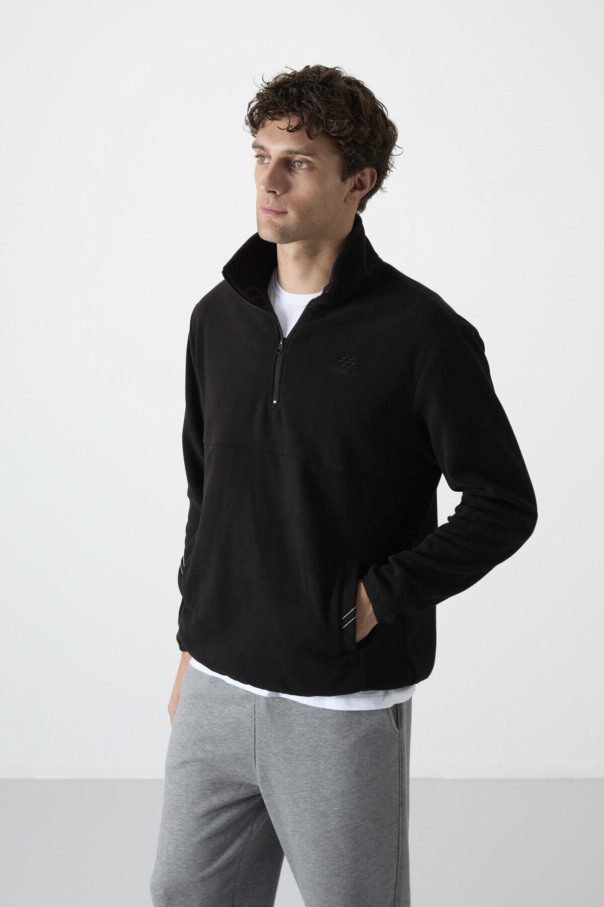 TommyLife Siyah Yarım Fermuarlı Sweatshirt Slim Fit Dik Yaka Erkek Polar - 87891
