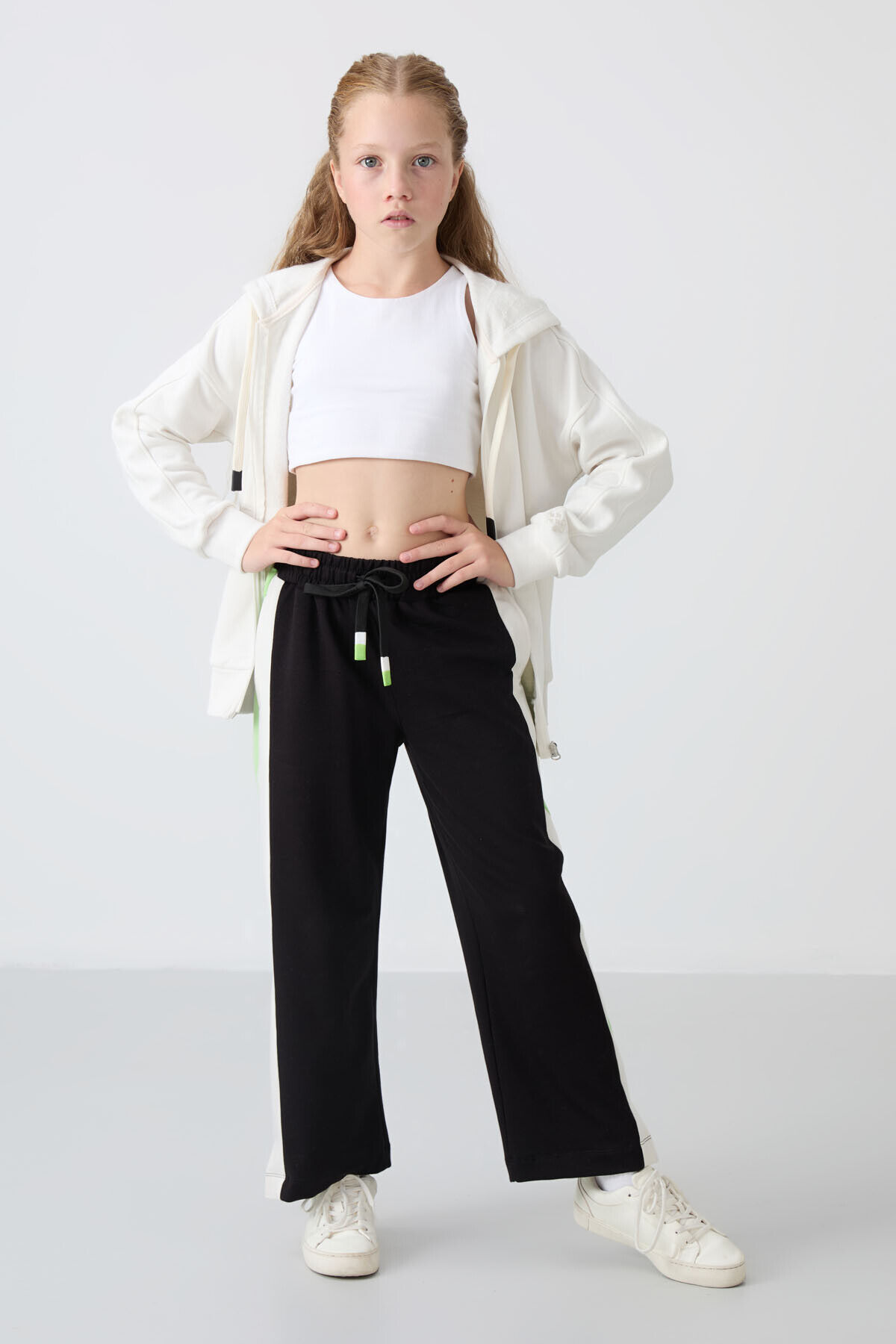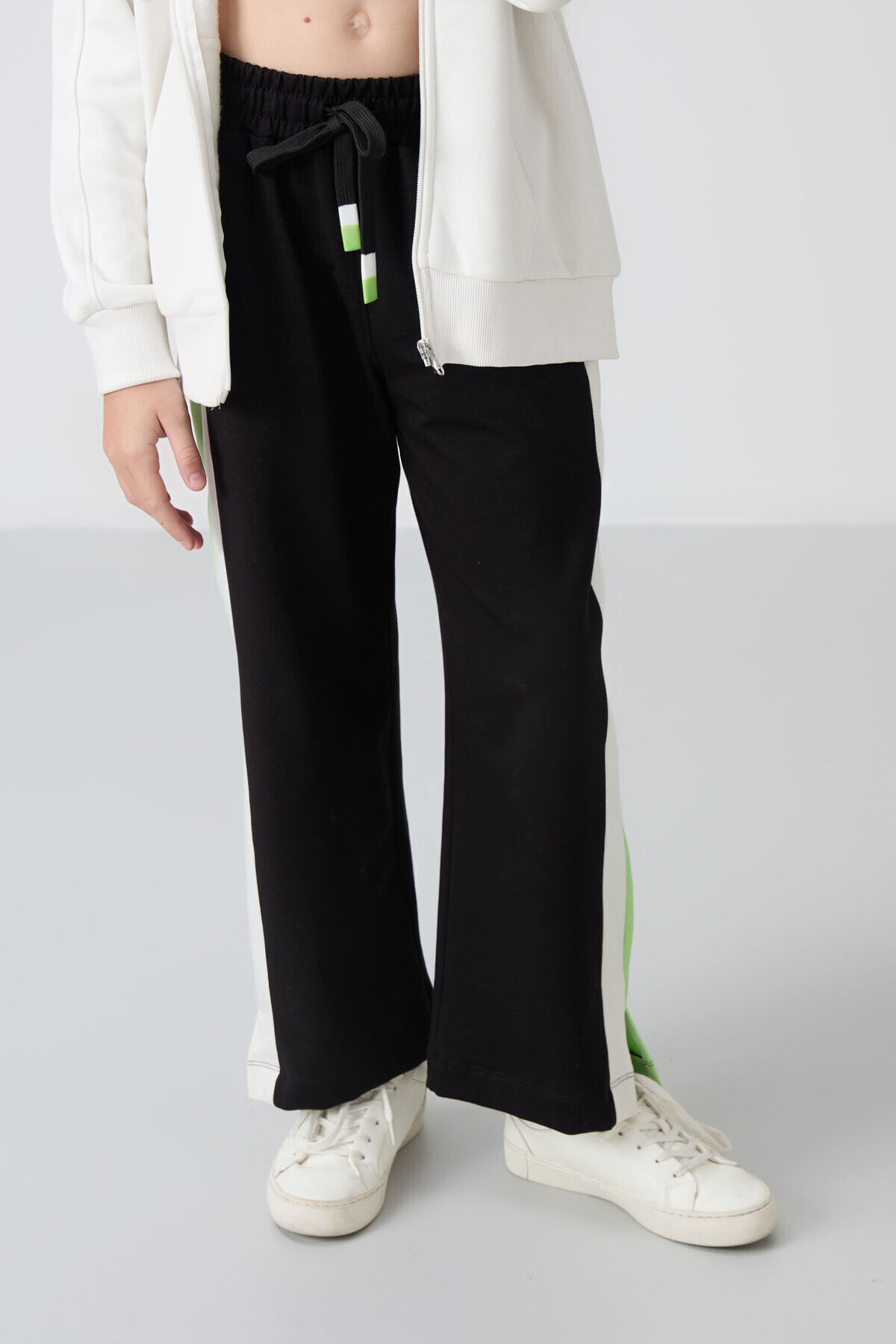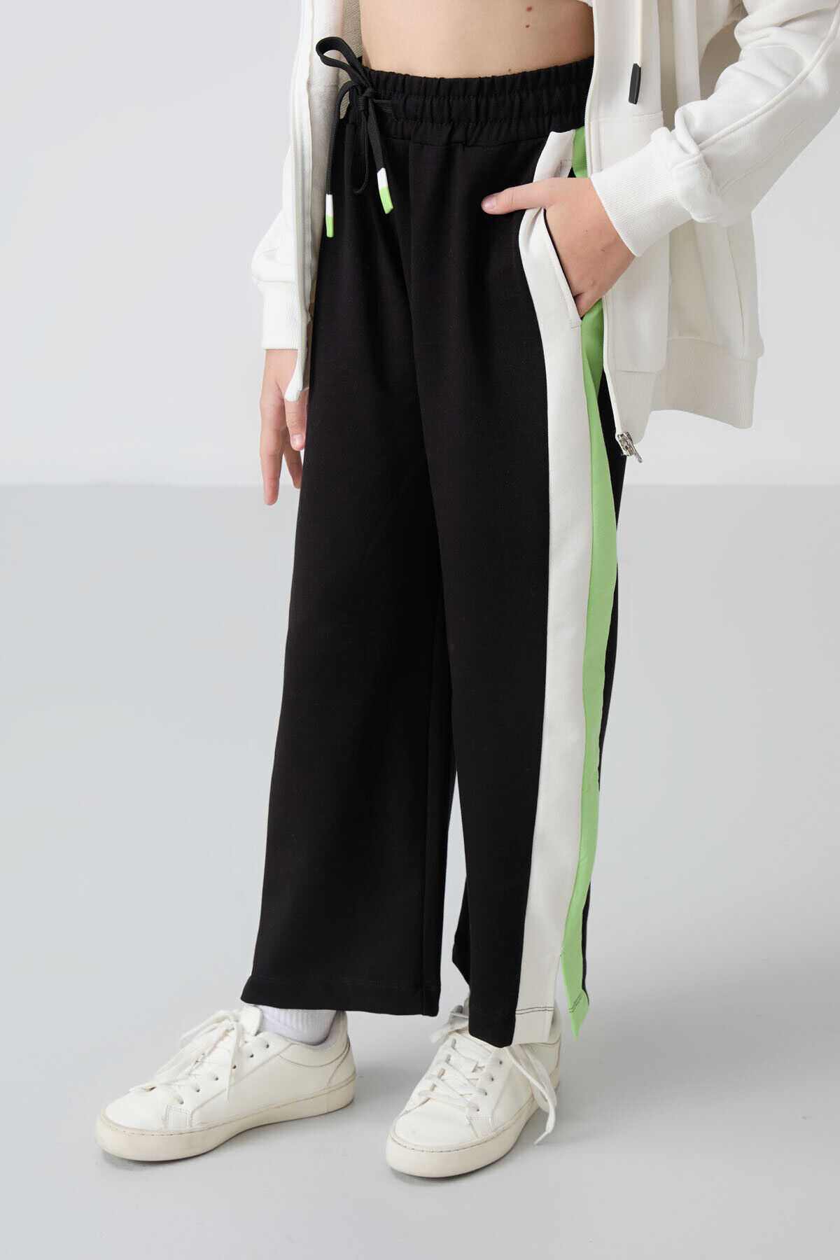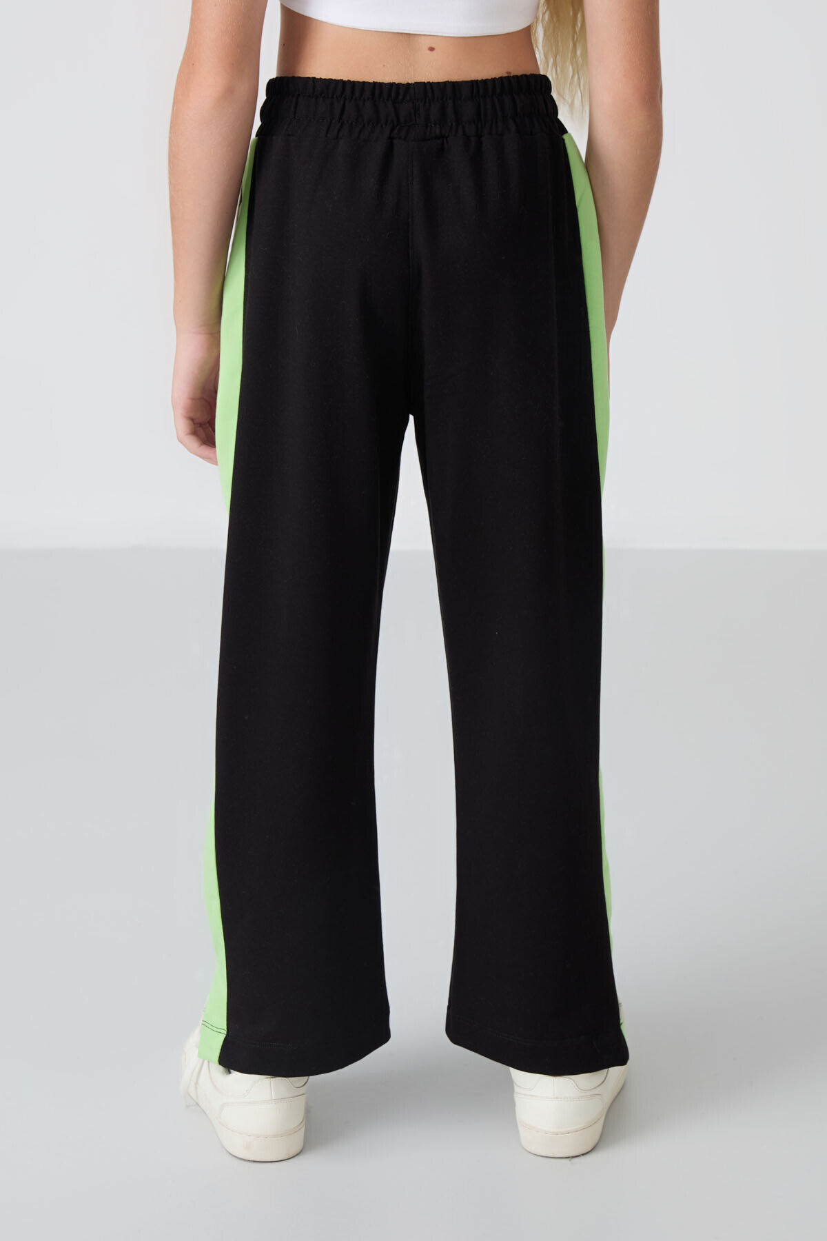 TommyLife Siyah Yırtmaç Detaylı Cepli Geniş Paça Kız Çocuk Eşofman Alt - 75141
