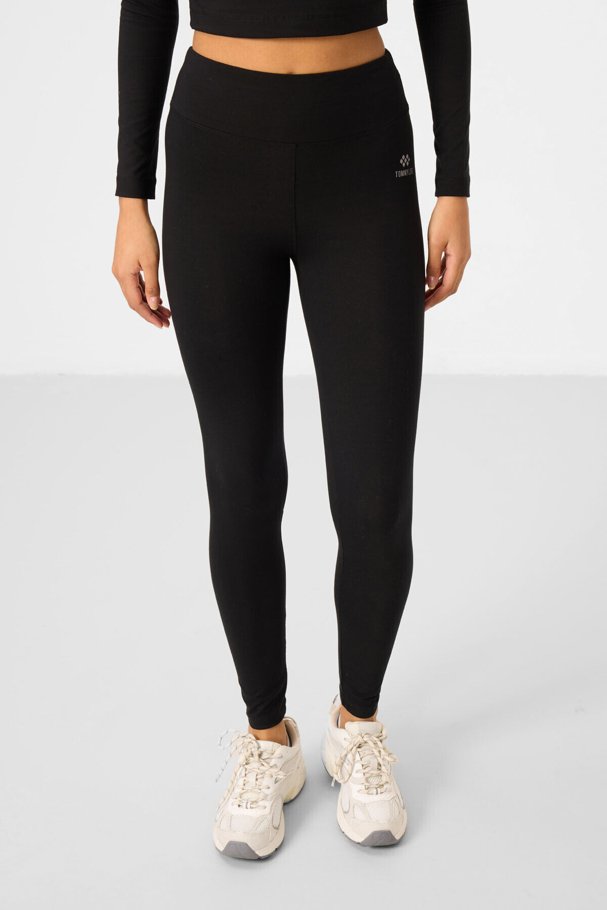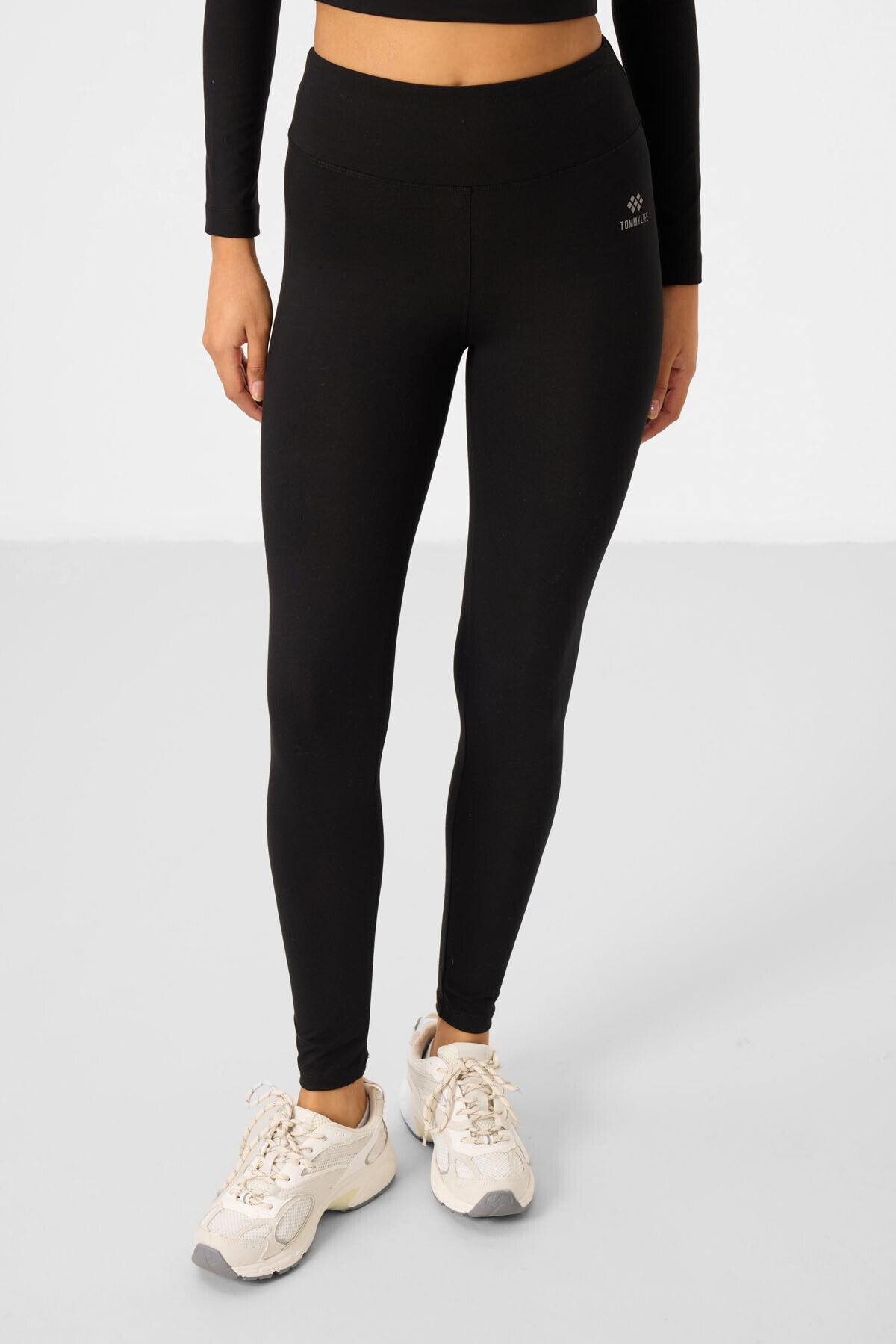 TommyLife Siyah Yüksek Bel Uzun Kollu Slim Fit Crop Top Kadın Tayt Takım - 95286