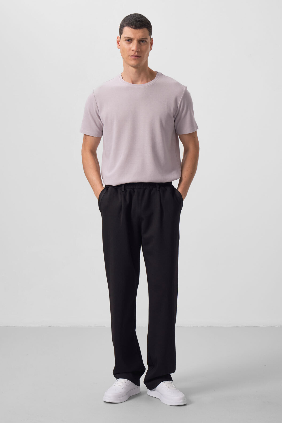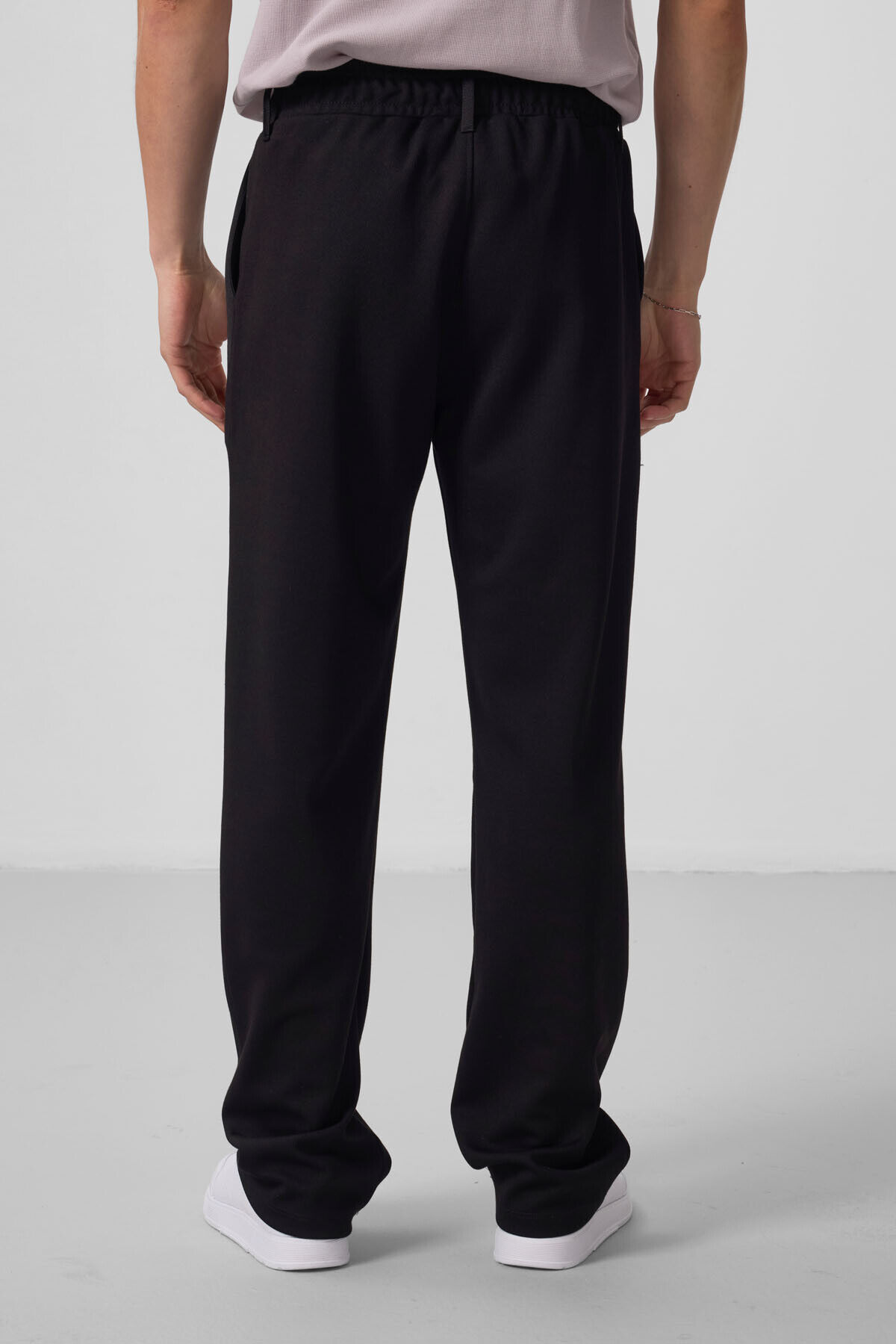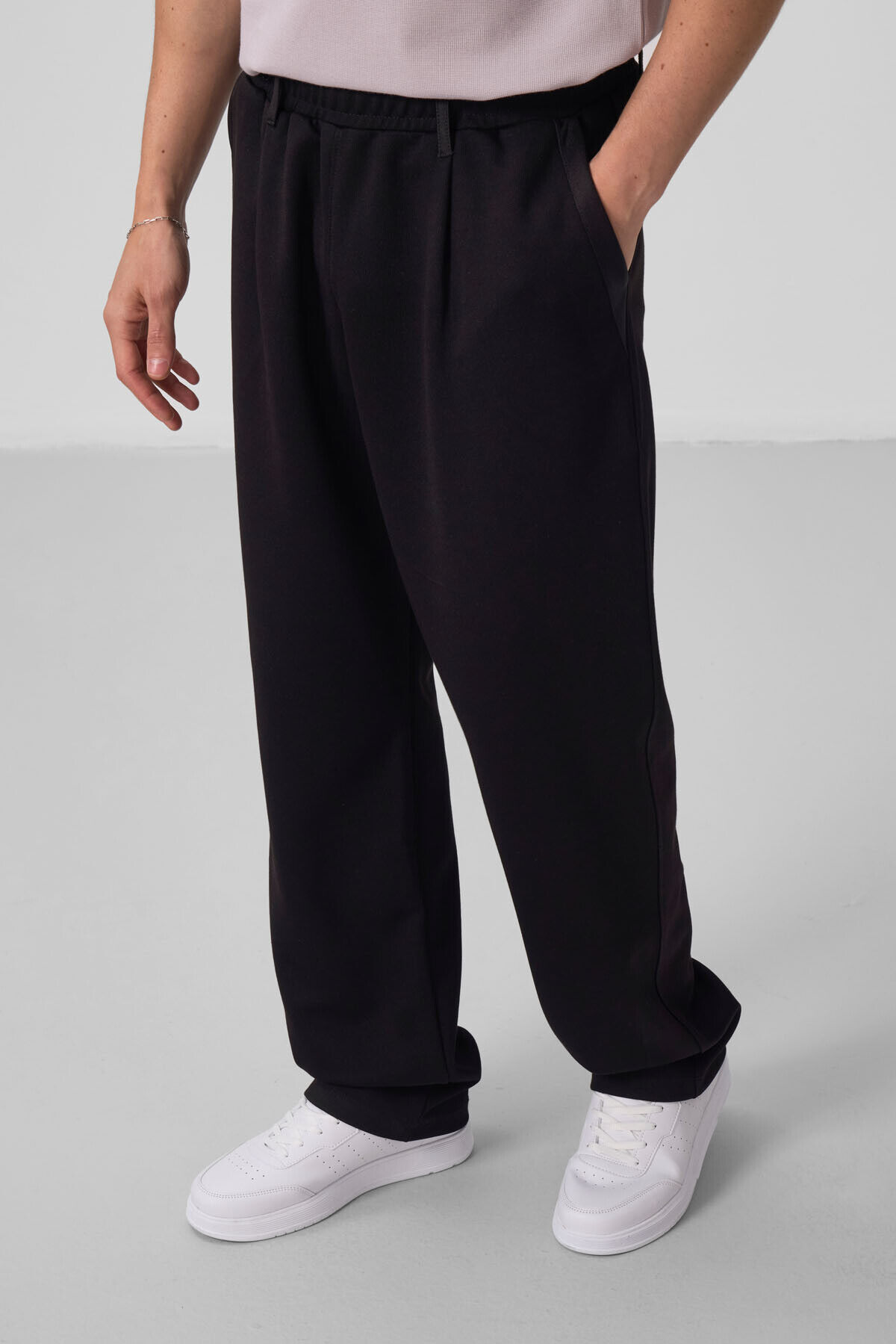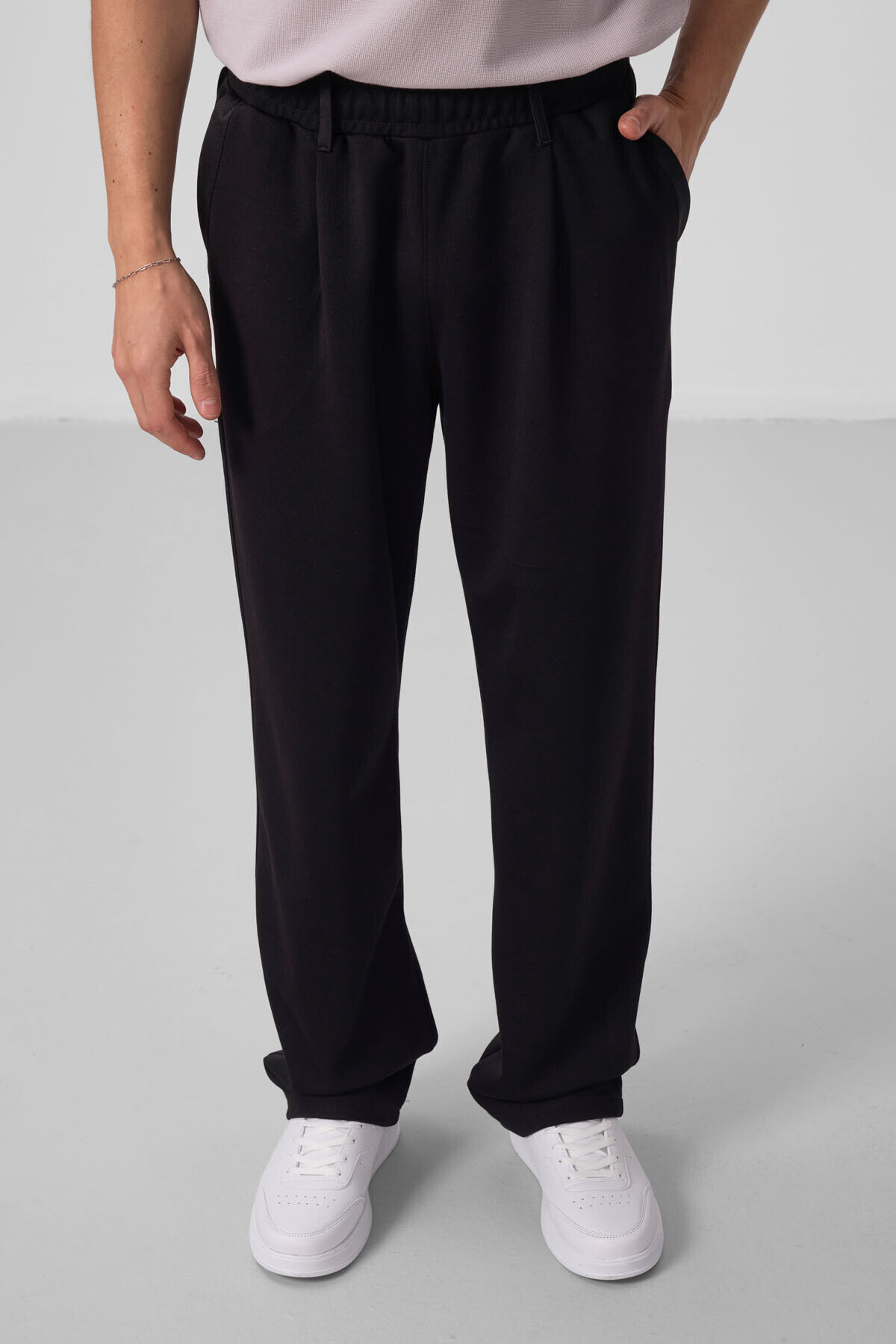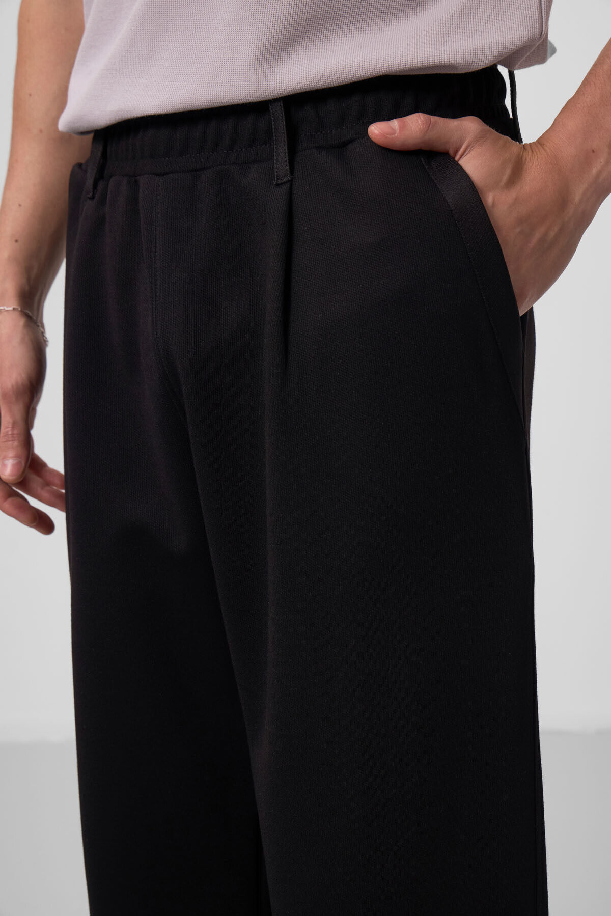 TommyLife Siyah Yüzeyi Dokulu Rahat Form Palazzo Erkek Pantolon - 82163