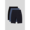Slim Fit 3lü Paket Siyah-İndigo-Bordo Kadın Kısa Biker Tayt - 91007