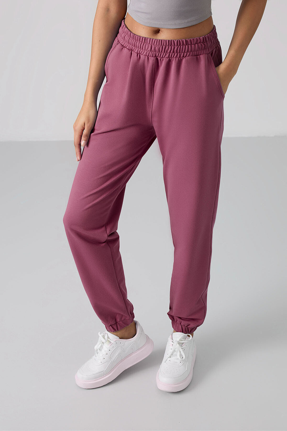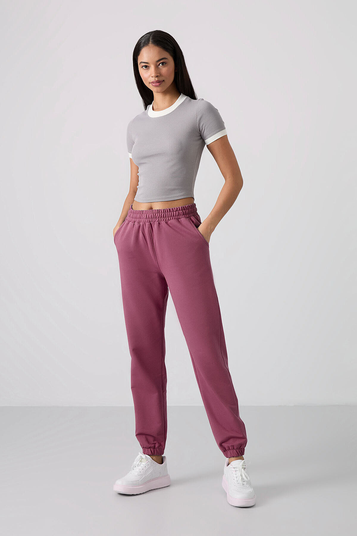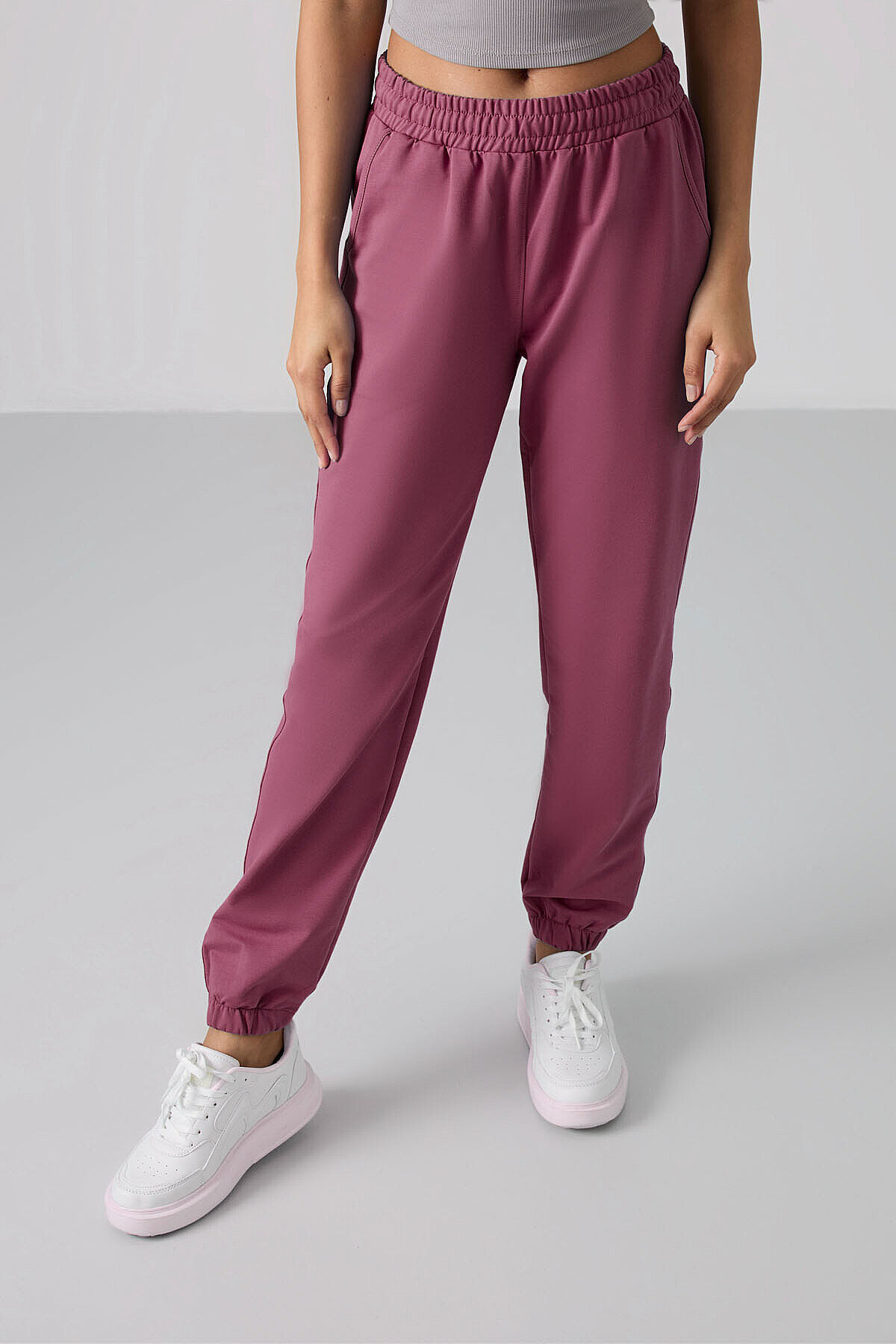 Soft Vişne Cepli Yüksek Bel Rahat Form Lastik Paça Kadın Eşofman Alt - 94583