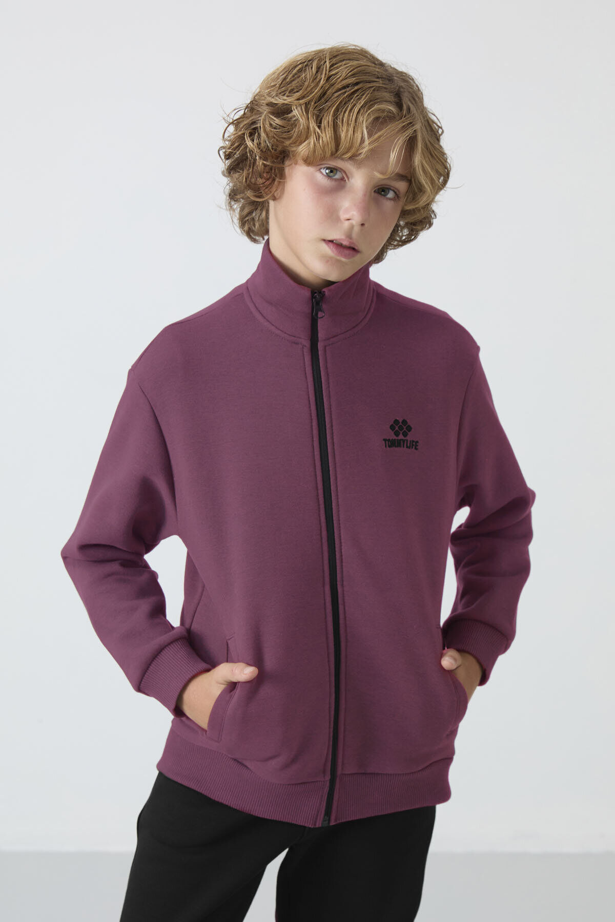 TommyLife Soft Vişne-Siyah Pamuklu Kalın İçi Tüylü Standart Fit Nakışlı Erkek Çocuk Eşofman Takım - 11256