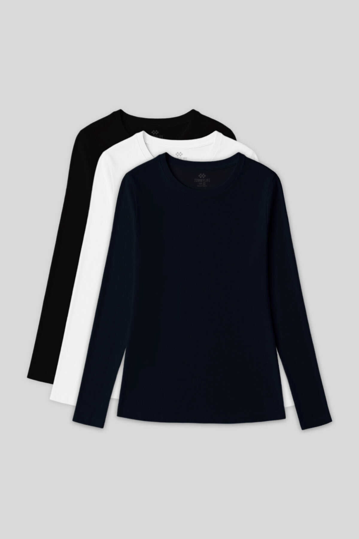 TommyLife Standart Fit Basic O Yaka 3lü Paket Siyah-Beyaz-Lacivert Kadın T-Shirt - 97312