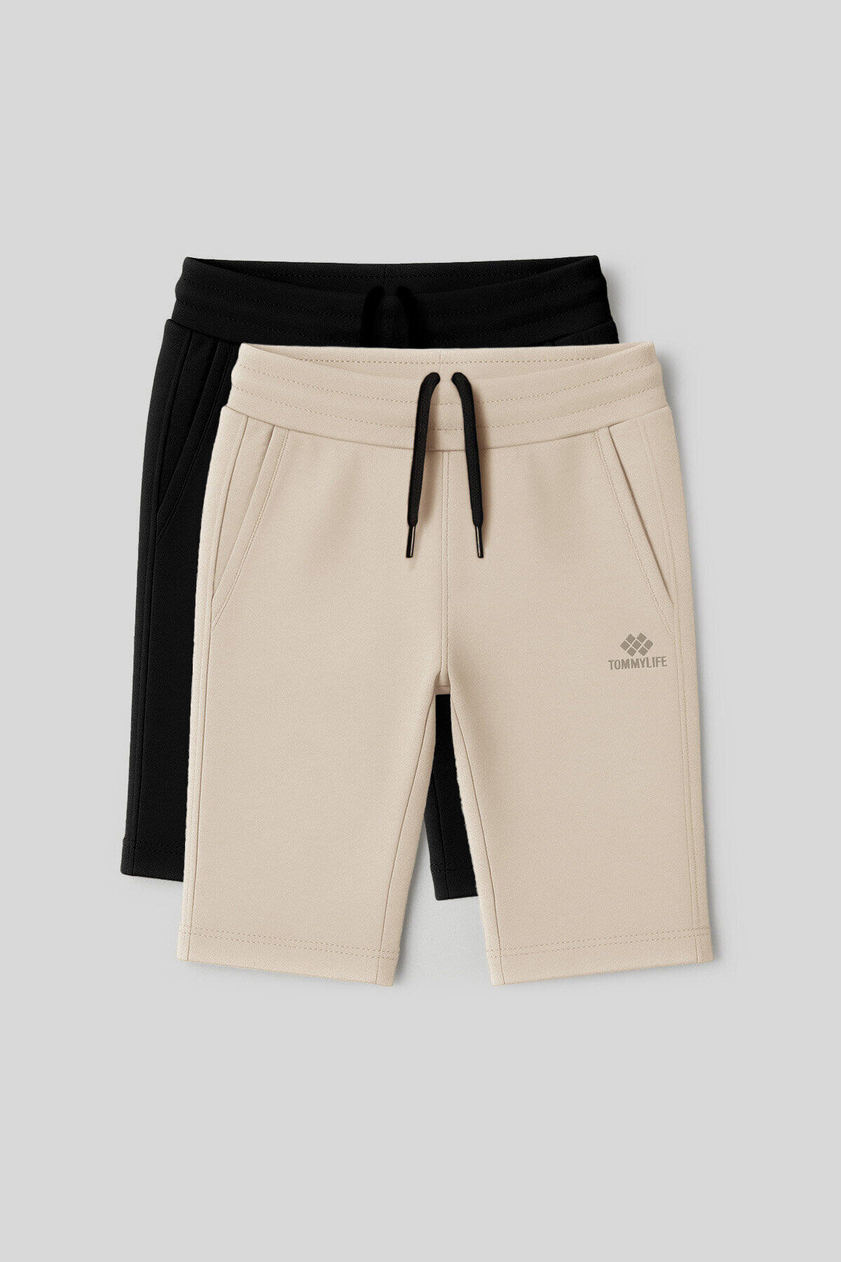 Standart Fit Basic Performans 2li Paket Siyah-Bej Erkek Çocuk Şort - 11303